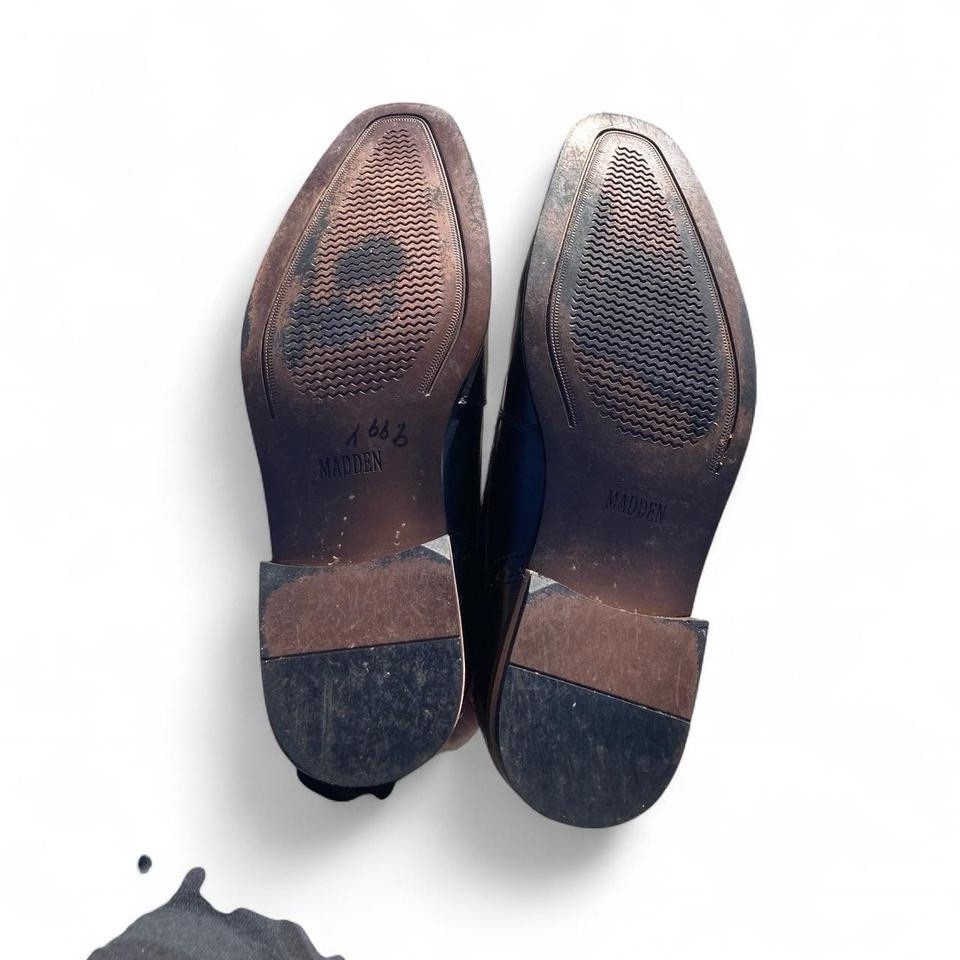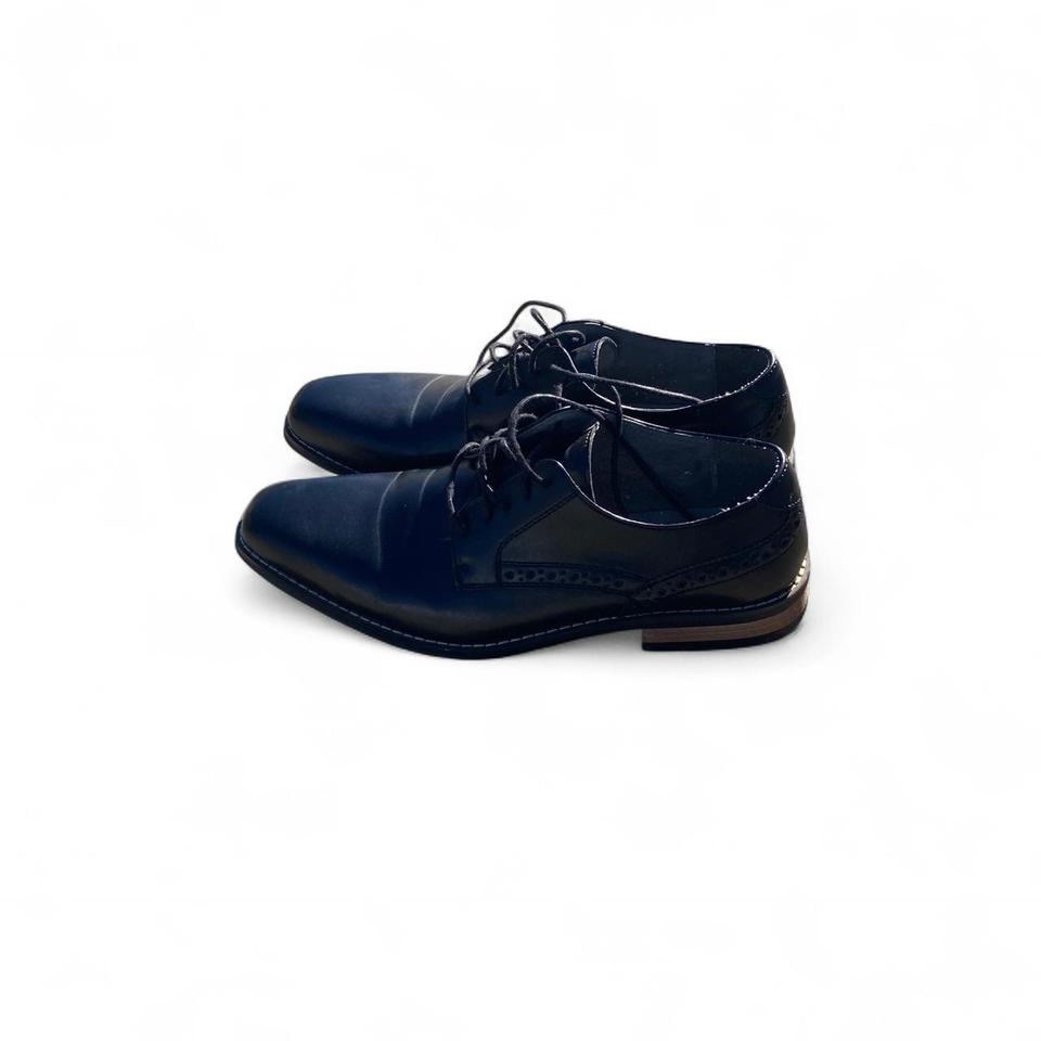 These Vintage Black Leather Lace-up Oxford Shoes by Steve Madden Men are a classic and stylish addition to any man's wardrobe. Crafted with genuine leather, these shoes feature a solid black color with lace accents for a sophisticated look. With a lace-up closure and Oxford style, they are perfect for dressy occasions in the summer, fall, and spring seasons. The outsole and upper material are both leather, ensuring durability and comfort. The size 9 shoes are designed specifically for men and come in a timeless black color that pairs easily with a variety of outfits.