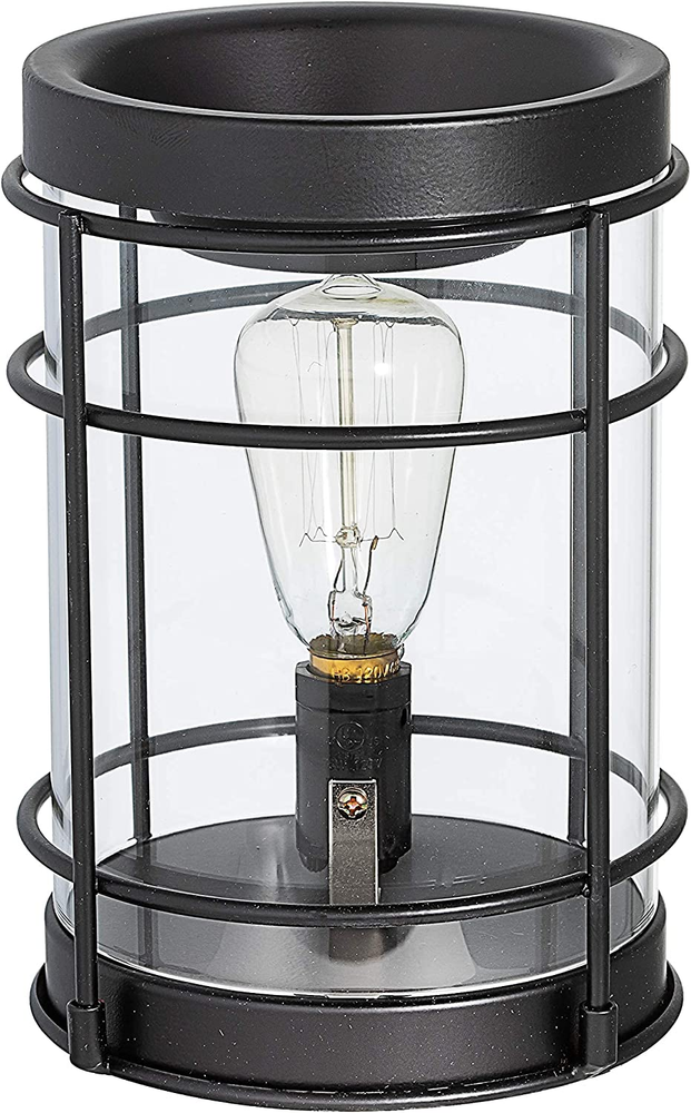 FLAMELESS ALTERNATIVE TO CANDLES – Electric wax warmers are a safer and cleaner alternative to burning traditional candles. Simply warm your own scented wax melts in the warmer cup to fill your room with fragrance. Smokeless, flameless, and easy to use. INDUSTRIAL RUSTIC WAX WARMER WITH VINTAGE BULB – This candle warmer provides quality function without compromising its looks! Inspired by vintage lanterns, the black metal cage frame wraps around a clear glass body to show off the bulb inside. PREMIUM TIMER WITH MULTIPLE SETTINGS – This candle wax warmer comes with a safety timer on the cord so you can set it to always on, or automatically turn off in 2, 4, or 6 hours. You can also adjust the power levels between low, medium, and high for varying intensities of fragrance. ATTRACTIVE AIR FRESHENER – This decorative wax burner has modern farmhouse appeal and doubles as a night light when turned on. Great functional décor accent for home living rooms, bedrooms, offices, yoga studios, spas and more! EASY TO USE WITH DEEP FRAGRANCE DISH – Fragrance tray features a deep dish design that prevents spillage while wax melts. To use, add your own scented wax melts, tarts, cubes, or chips to the dish. Plug in warmer and turn to desired settings. Enjoy the aroma. Includes 40W/120V bulb with an E12 base. Product Description Vintage Bulb Candle Wax Warmer with Timer This electric wax warmer features a vintage-inspired design full of rustic, farmhouse, and industrial charm that will naturally become a part of your home or office décor. A Safe Way to Enjoy Fragrance A Flame-Free Alternative to Candles Wax warmers are a safer, cleaner alternative to burning traditional candles. Candle warmers eliminate the hassle of smoke and a flame for a simpler way to enjoy fragrance. Decorative Wax Warmer Styled after vintage lanterns, its black metal cage frame wraps around a clear glass cylinder that shows off the decorative bulb inside for a modern farmhouse vibe. Doubles as a Night Light The perfect decorative accent for home living rooms, bedrooms, offices, yoga studios, spas and more! Product Highlights 40-watt bulb included (120V with an E12 base) Automatic safety timer with multiple settings Removable metal fragrance tray 4.5 x 4.5 x 6.25 inches Materials: metal and glass Comes with instructions for usage and safety For proper use and safety, never start warmer without first putting in wax melts. Wait until tray has cooled completely before cleaning or changing out melts. Evenly Melts your Wax Cubes Designed for use with scented wax melts, tarts, and chips, this glass and metal wax warmer will evenly melt your wax cubes. Its metal fragrance tray is removable for easy cleaning and its deep dish design prevents spills while the wax melts. Features a Premium Automatic Timer This premium plug-in warmer is complete with a safety timer with multiple settings. You can switch the warmer to Always On or choose an automatic turn off time for peace of mind. Timer also includes three different power levels to control fragrance intensity. Creates Room-Filling Fragrance Before adding your own scented wax melts, make sure warmer is plugged in and turned off. Add desired amount of wax cubes, tarts, or chips to the removable tray, then turn on warmer to preferred settings. Sit back, relax, and enjoy the aroma!