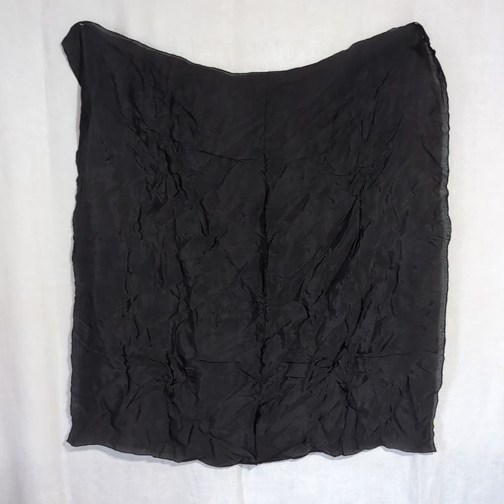 Vintage square scarf neckerchief measures approx 30" square sheer black color shiny silk material handrolled edging excellent condition
