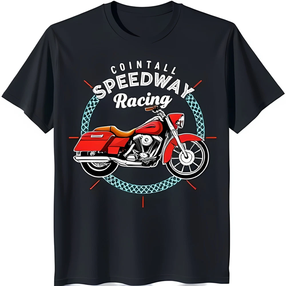 Vintage Black T-Shirt with Red Motorcycle Graphic Cointall Speedway Racing Desig