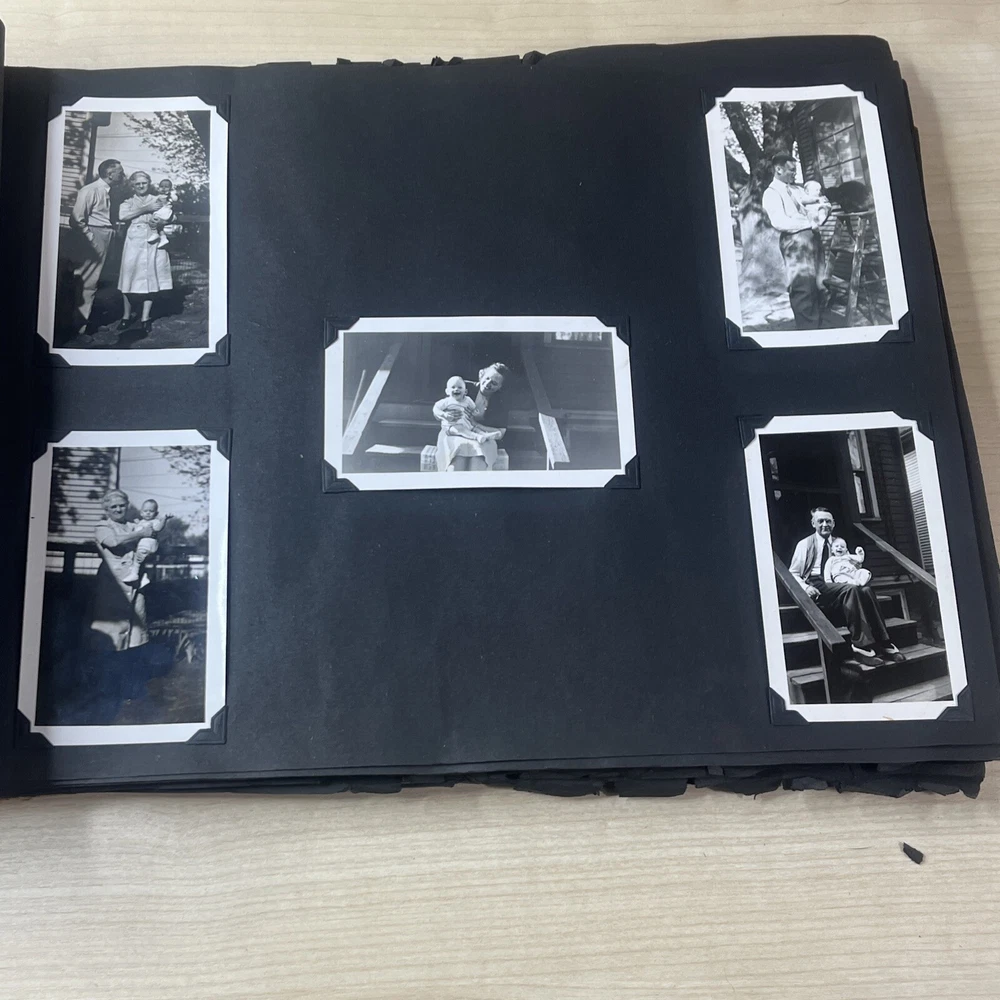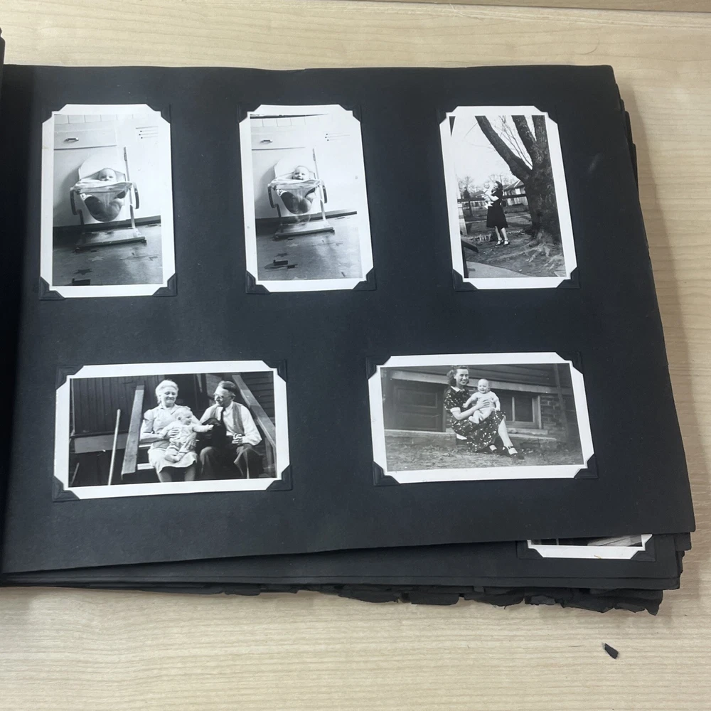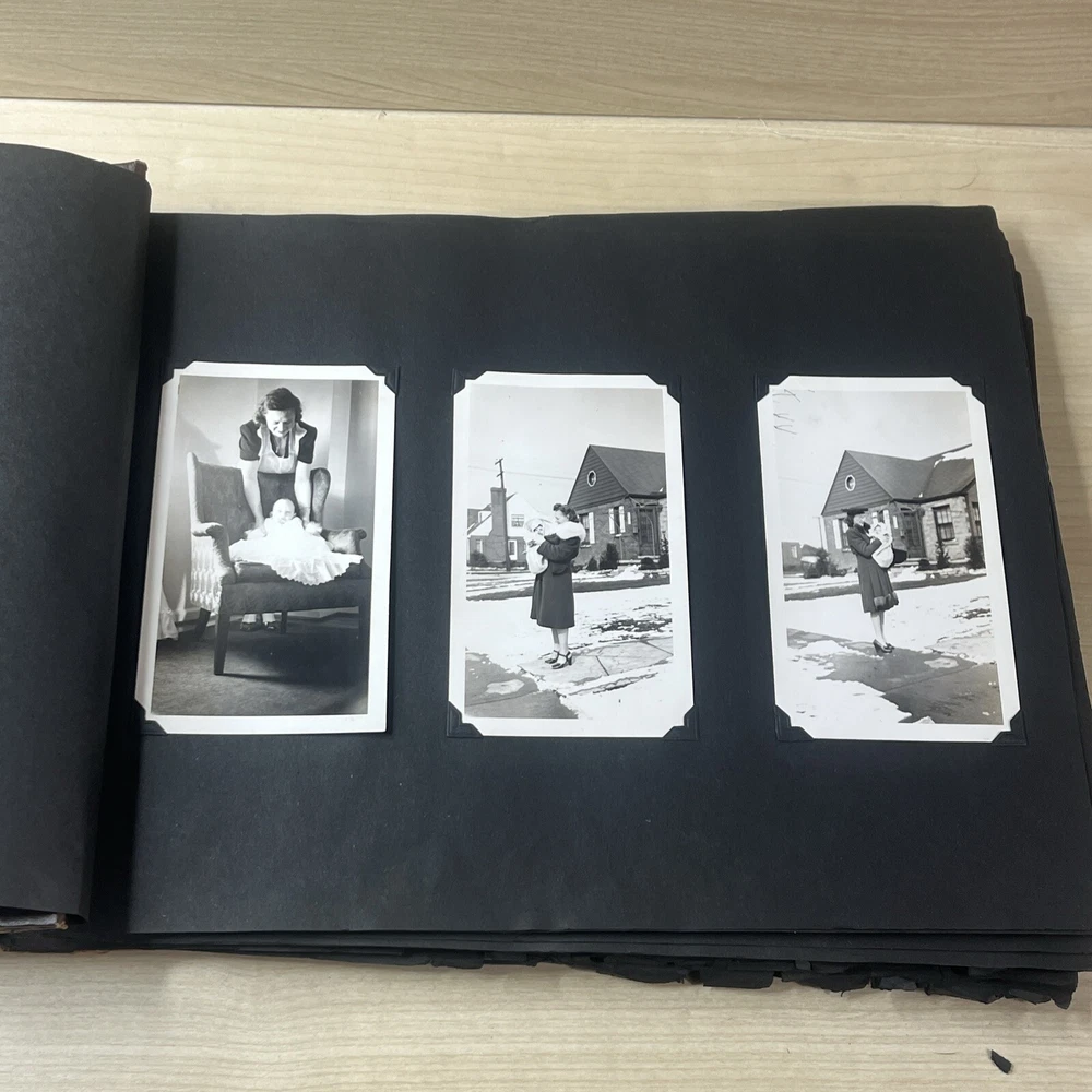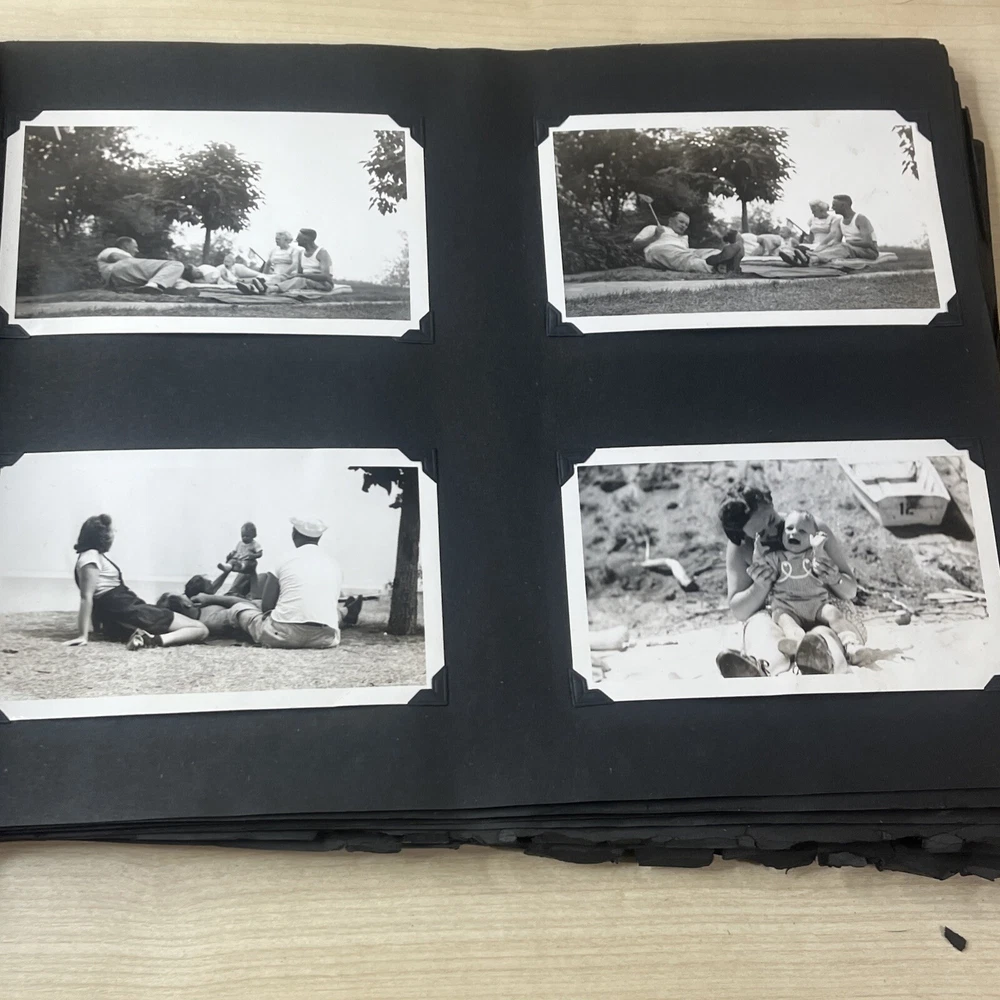 Vintage Black & White Family Photo Album 92 Photos Family Babies Vacation 1940's. Album shows some wear with all photos in good condition.