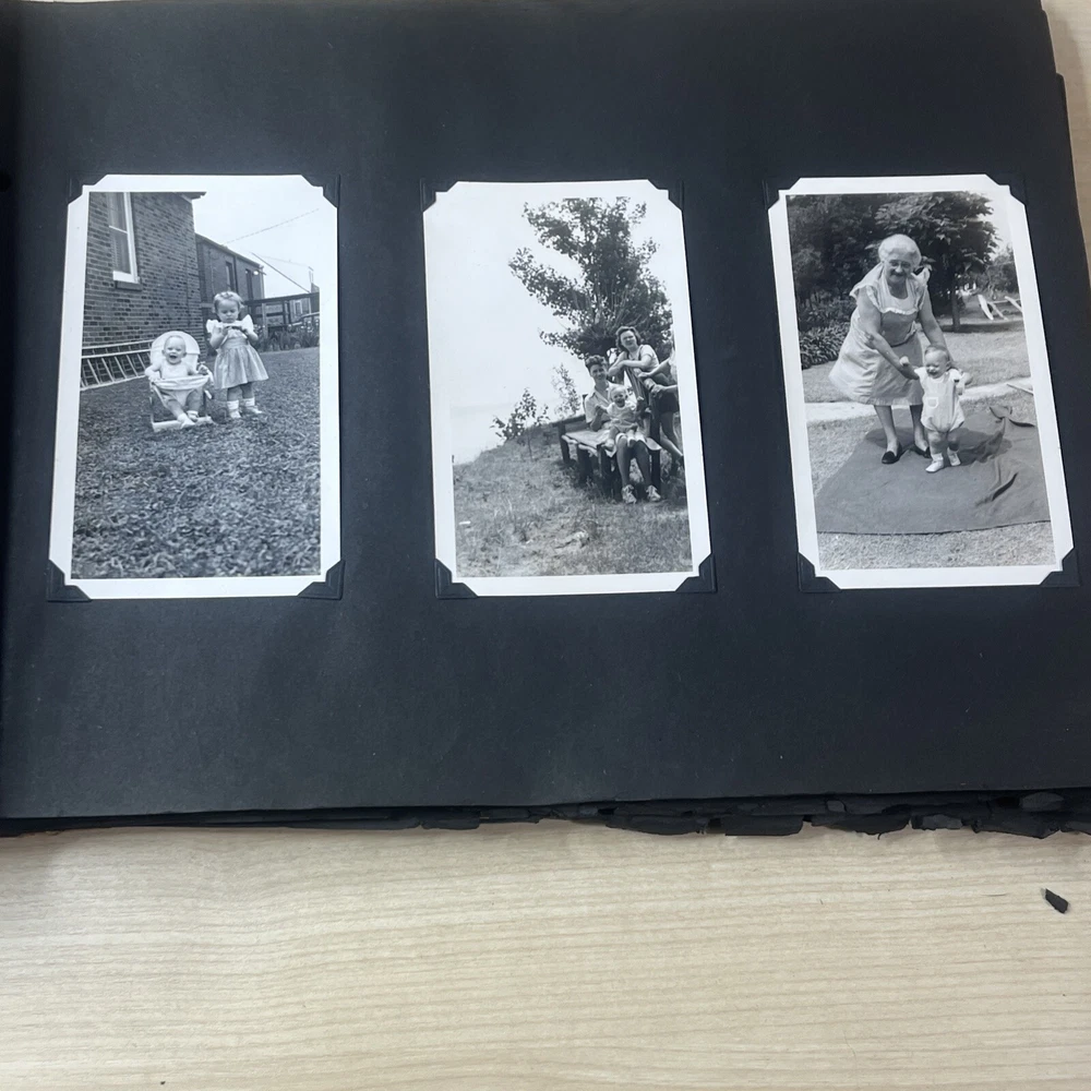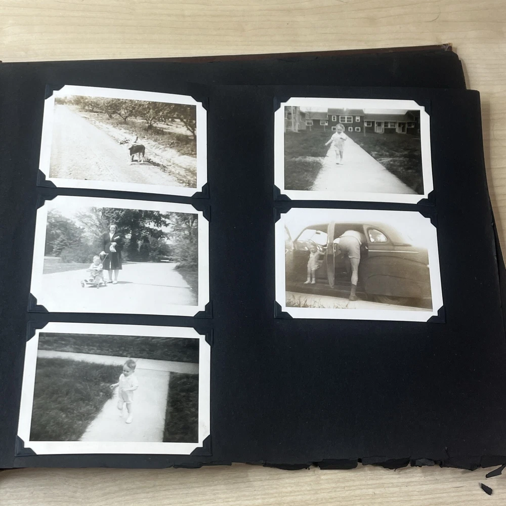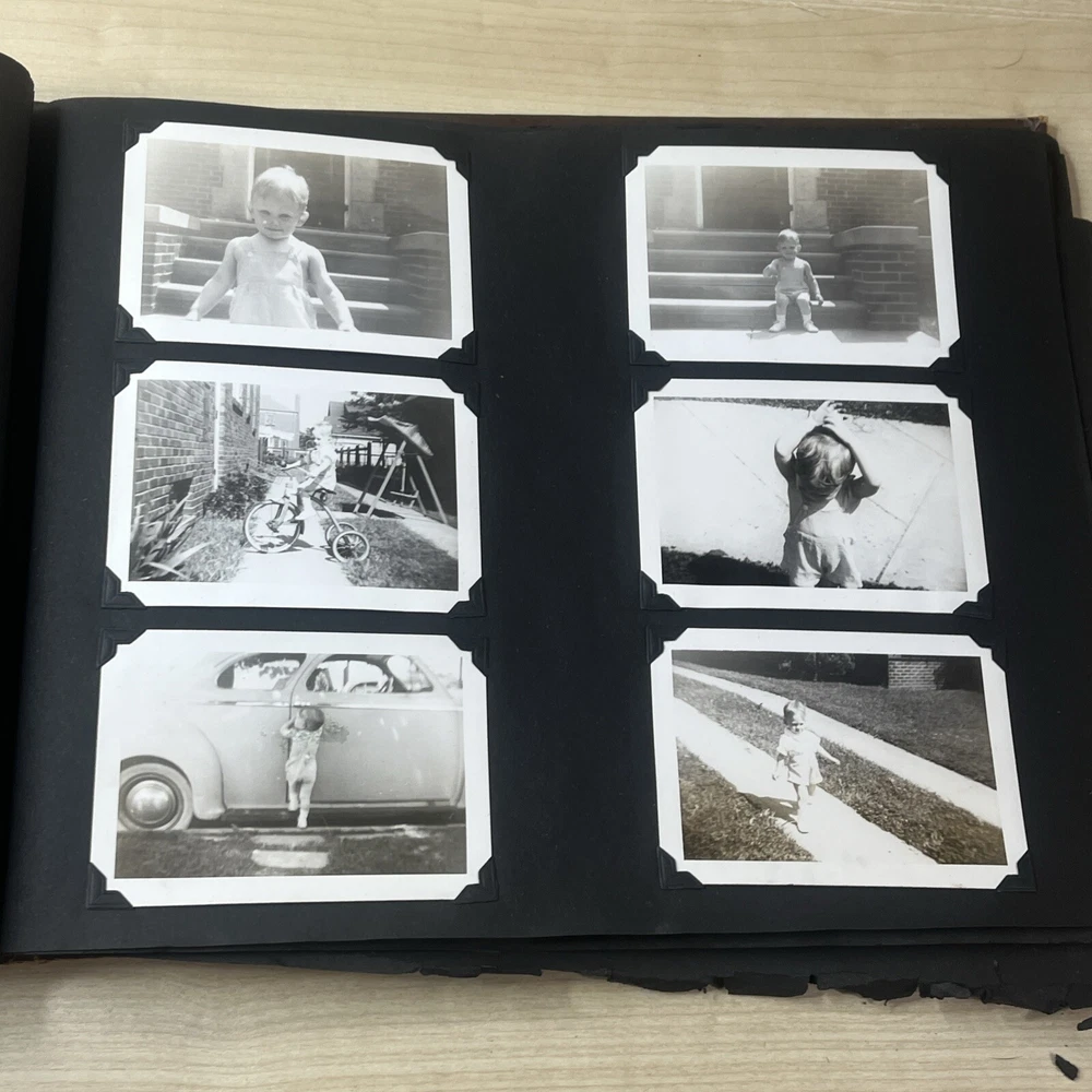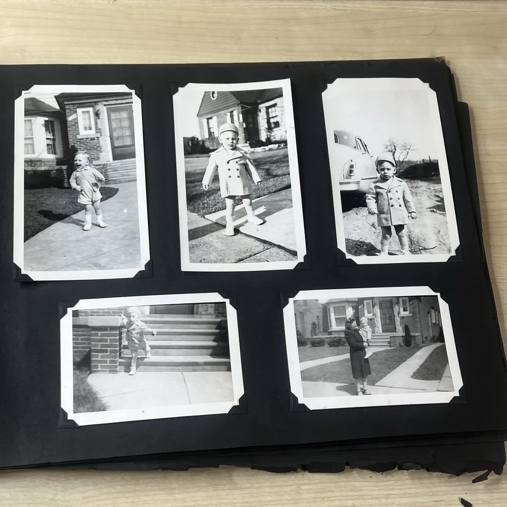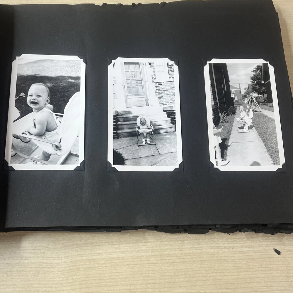 Vintage Black & White Family Photo Album 92 Photos Family Babies Vacation 1940's. Album shows some wear with all photos in good condition.