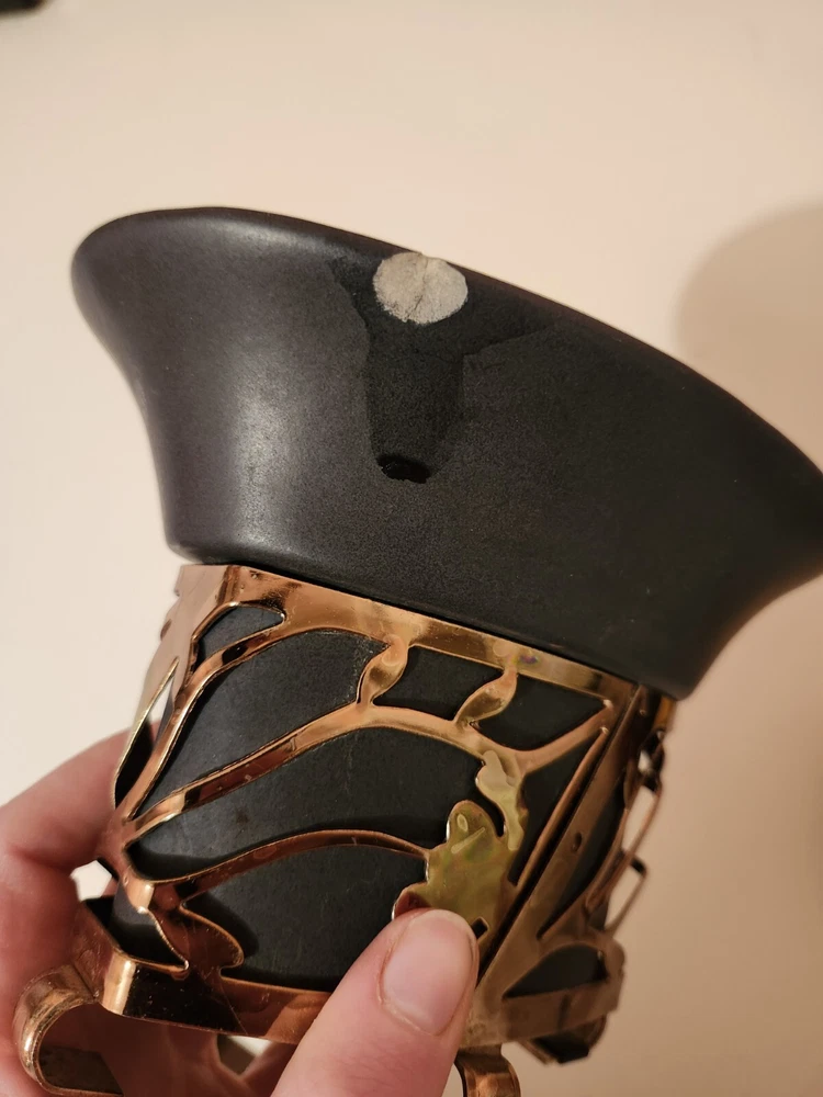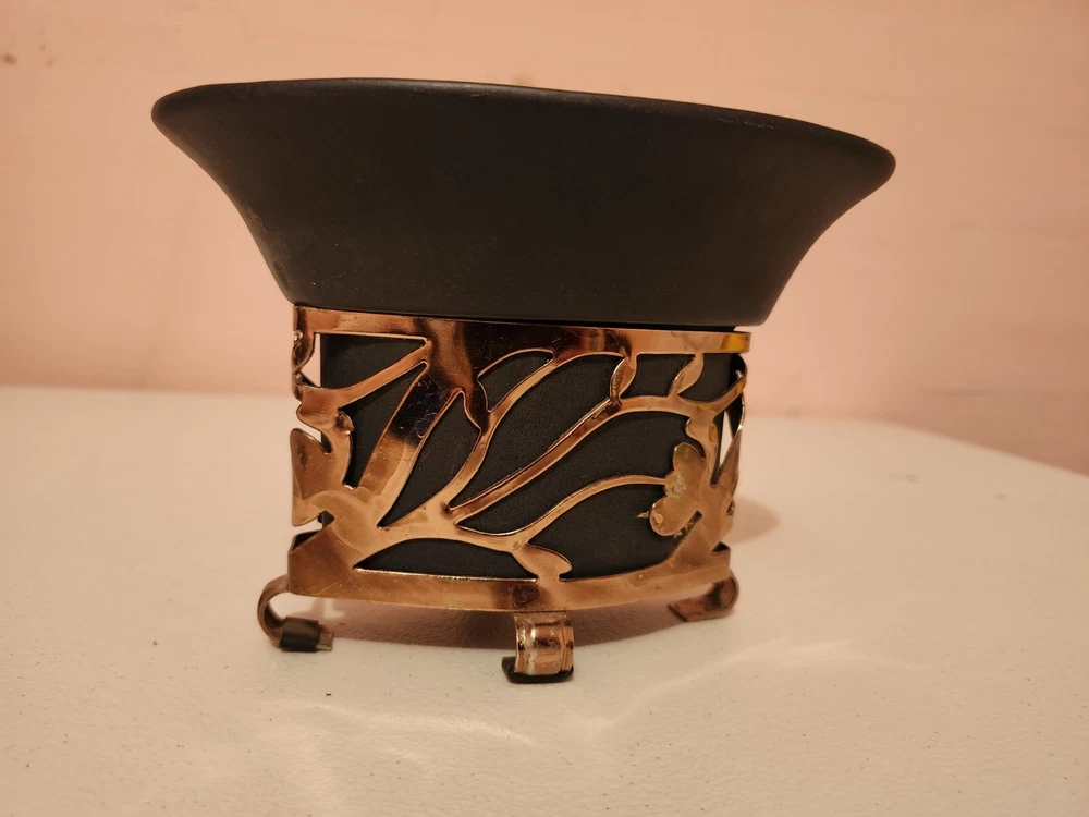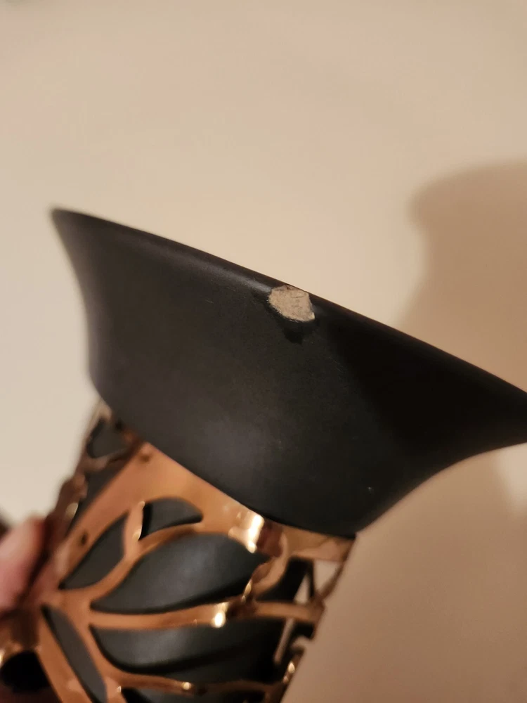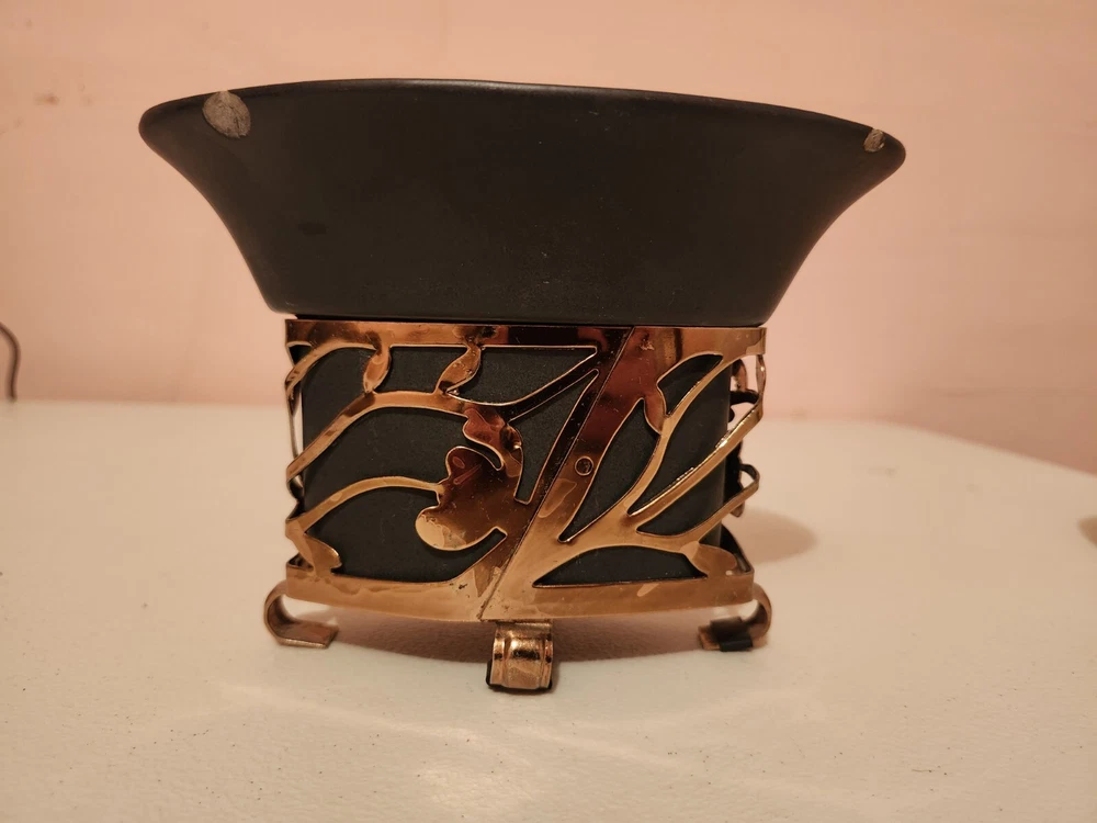 A vintage black decorative vase. Sized about 5"x7"x4.5"
