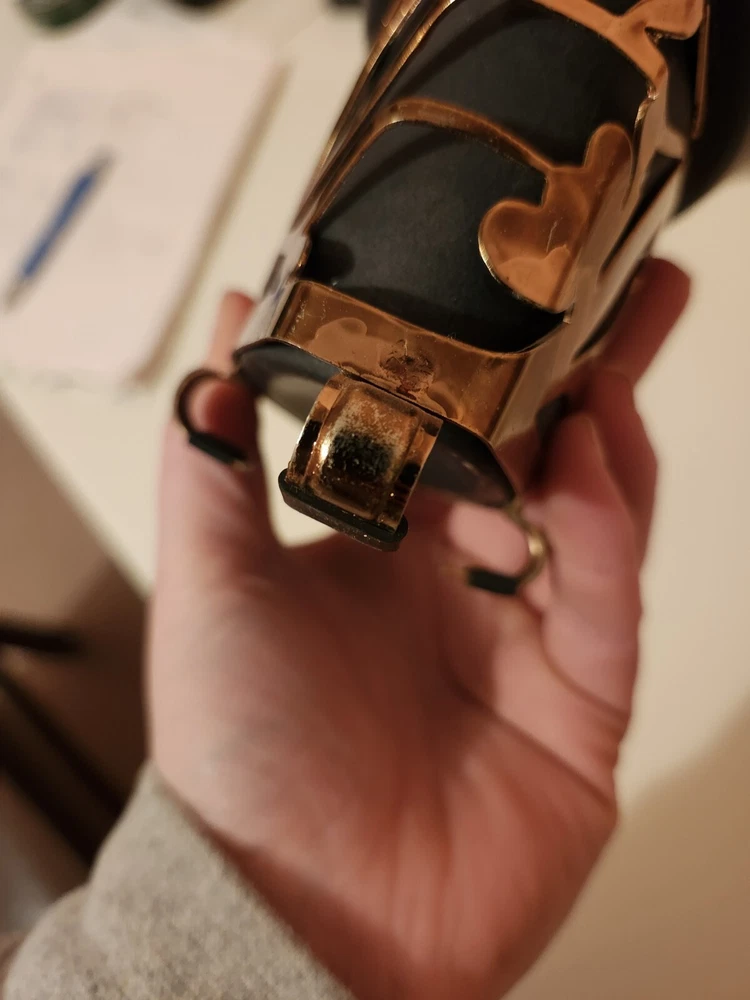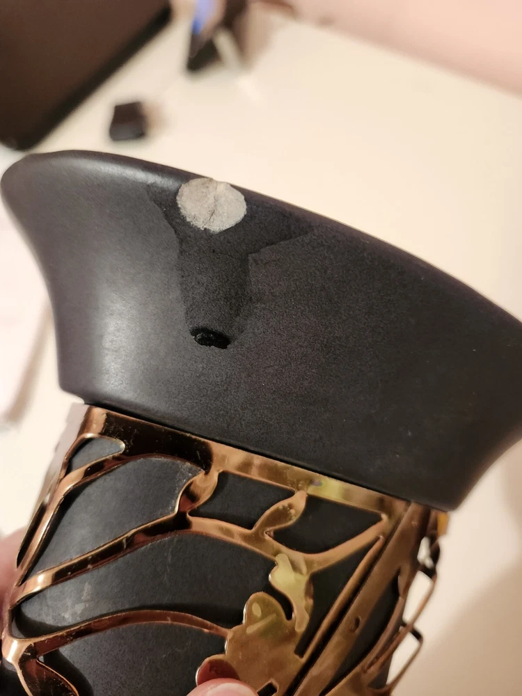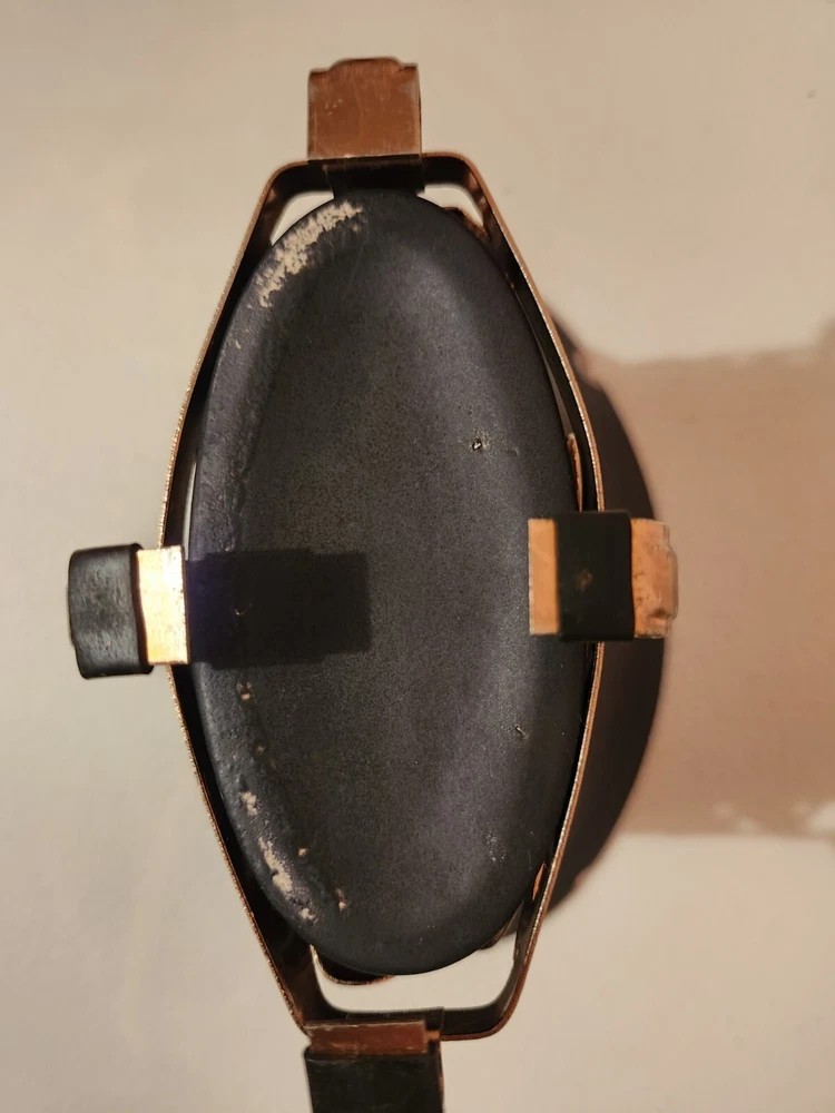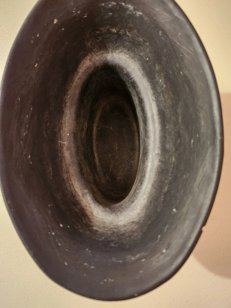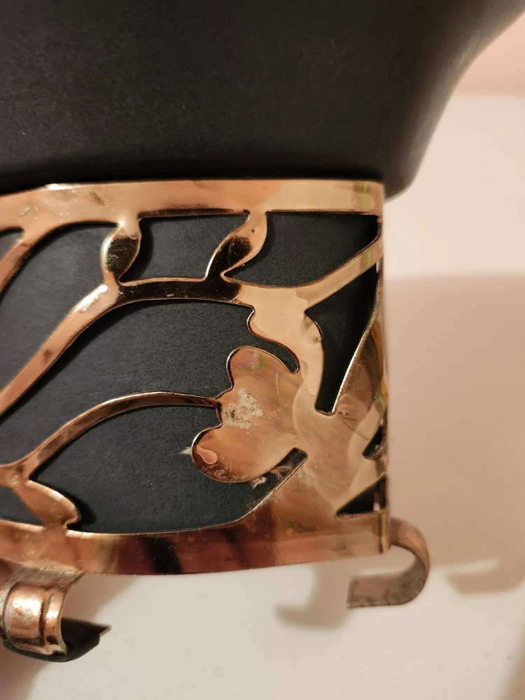 A vintage black decorative vase. Sized about 5"x7"x4.5"