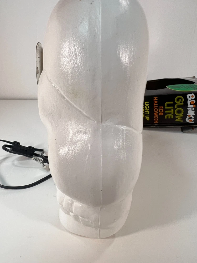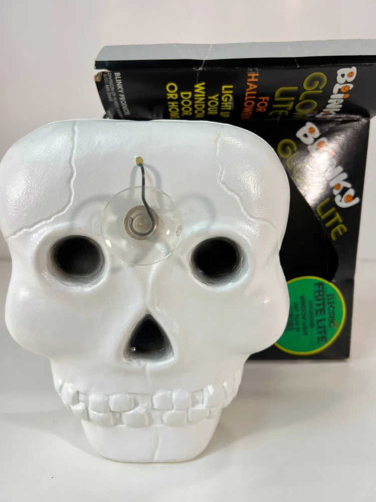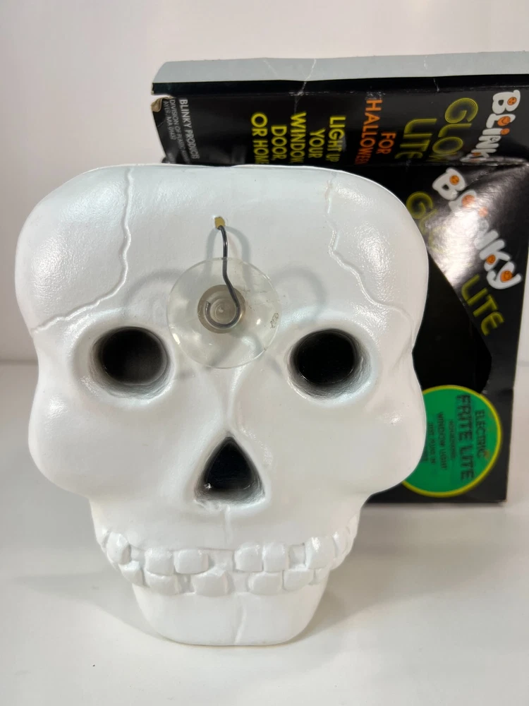 Vintage Blow Mold Light Up Skeleton Face Blinky Glow Lite 8" x 8" Tested/Works