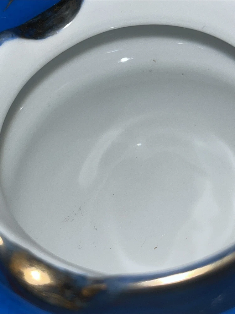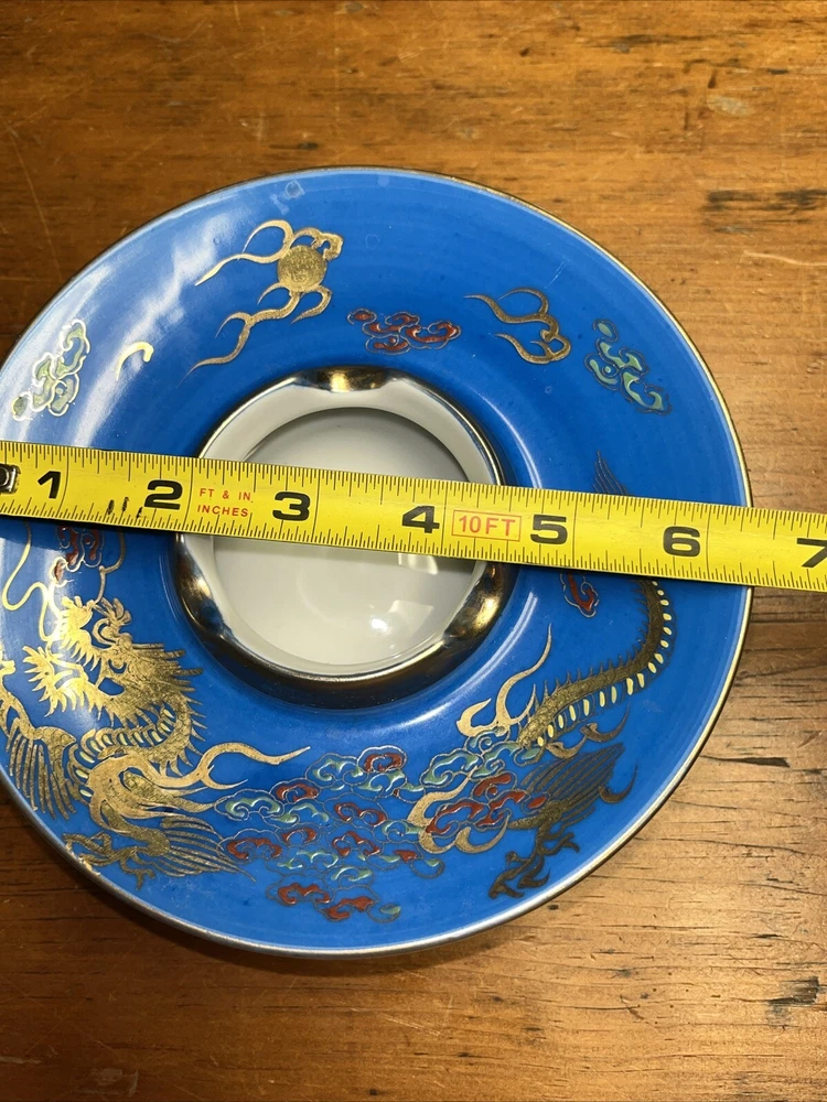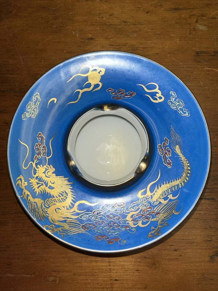 Vintage Blue 6.5" Footed Disc Ashtray UFO Saucer Nippon Style