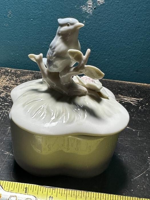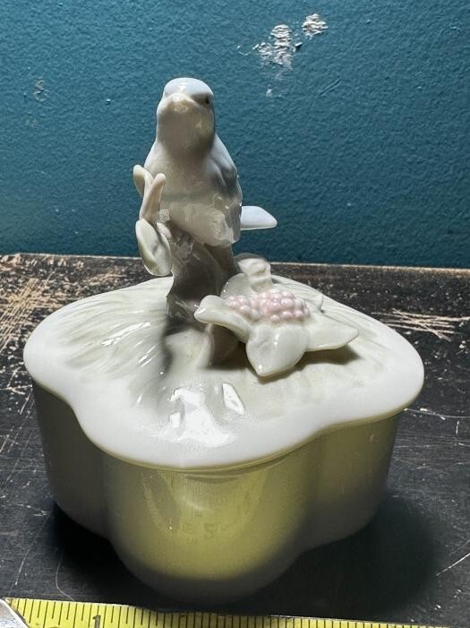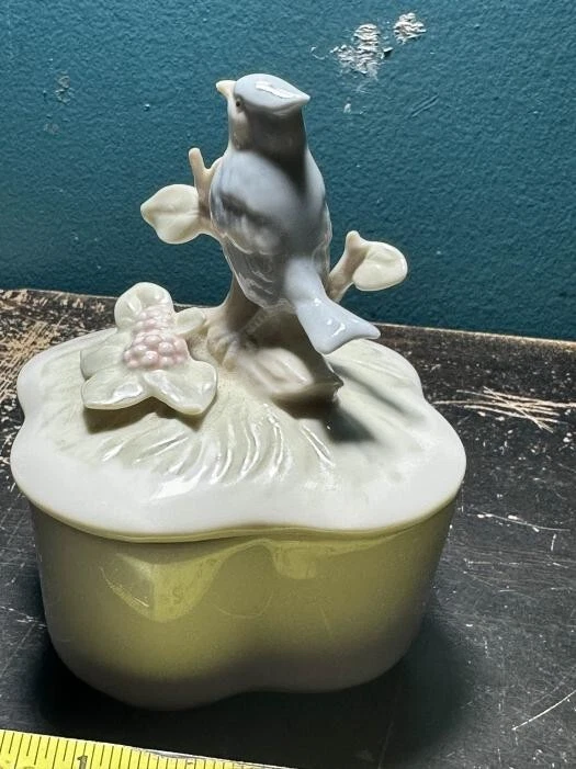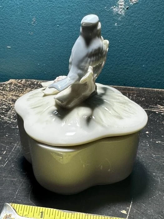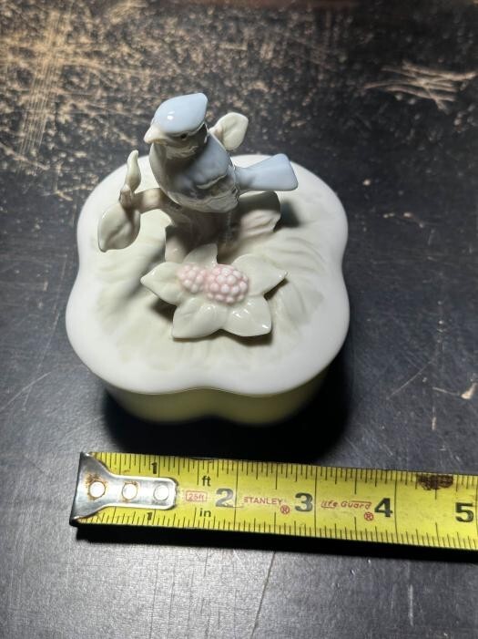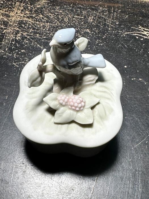 Vintage Trinket Jewelry Ring Box Blue Bird Porcelain George Good TAIWAN