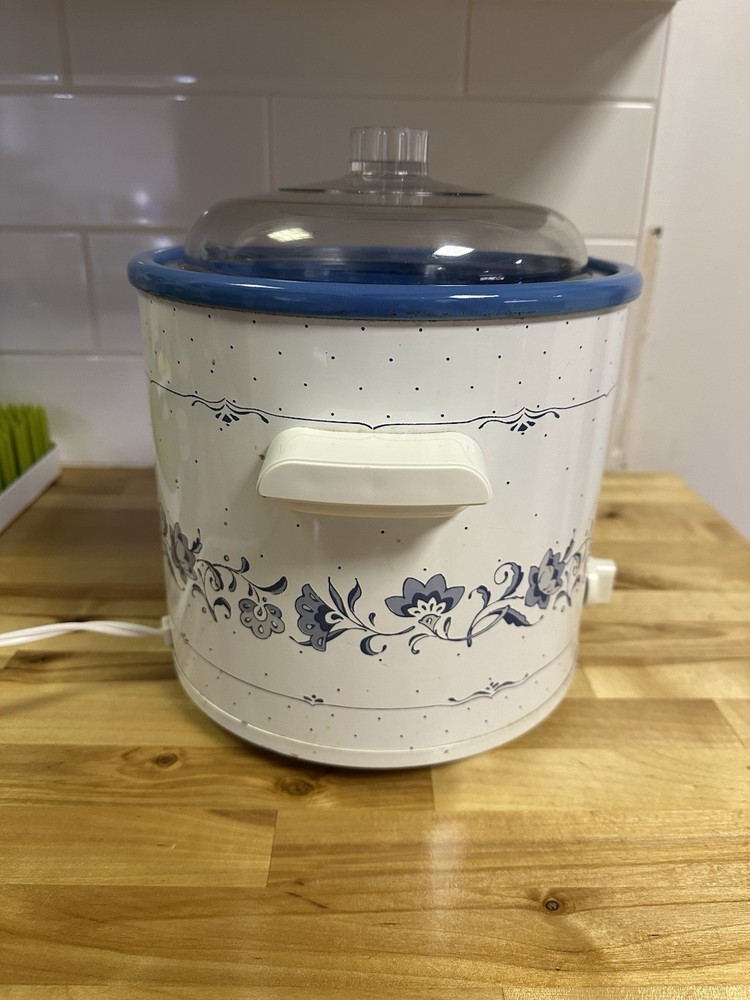 Vintage Blue Floral Crockpot Slow Cooker 3.5 Quart Rival Model 3100