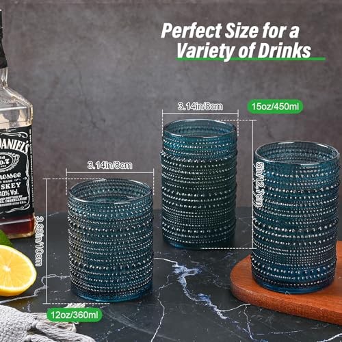 Return Policy Fast Delivery Trusted seller Vintage Glassware Drinking Glasses Set of 12,Blue 12oz & 15oz Hobnail Glass Cups,Embossed Water Tumbler,for Beer,Cocktail,Whiskey,Juice and Various Mixed Drinks- 1 Cleaning Brush Product Description PACKAGE DETAILS: includes 6 pcs 12oz vintage hobnail drinking glasses,6 pcs 15oz vintage hobnail drinking glasses,6 pcs glass straws, 1 pcs straw cleaning brush, 1 pcs cup cleaning brush UNIQUE RETRO DESIGN: The unique embossed beaded style has a European retro flavor, each cup is heavy and elegant, comfortable feel, and the embossed beaded design helps make them non-slip and easy to grip MULTI-PURPOSE: The 12oz cup measures 3.93 inches high and 3.14 inches wide, and the 15oz cup measures 5 inches high and 3.14 inches wide for water, yogurt, ice cream, milkshakes, cocktails, juices, beer, iced coffee, etc., suitable for home, bars, dessert stores and other places DISHWASHER SAFE: Made of high quality glass, BPA free, sturdy and durable, resist cracking and shattering, easy to clean with our cleaning sponge PERFECT GIFT SELECTION: Great gift options for family and friends. offers 100% satisfaction, if not completely satisfied, please contact us and we will fix it for you Shipping Returns Payment Shipping Shipping is FREE to all addresses other than APO/PO boxes in the lower 48 states. All our stock ships from US-based warehouses. Shipped via USPS or UPS (depending on location and package weight) Unless stated otherwise, all orders will ship within 24-72 hours of your payment being processed. Check our feedback to see the great reviews of FAST shipping we offer. Returns Seller does not accept returns Payment We currently accept payment via eBay managed payments only. Once payment is cleared, we will dispatch your shipment within 1-3 business days. Please refer to the "Shipping" tab for more information regarding shipping speed to your destination.