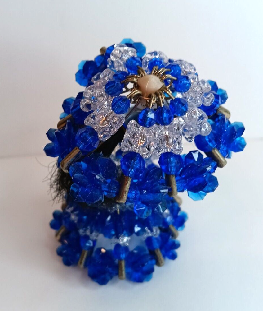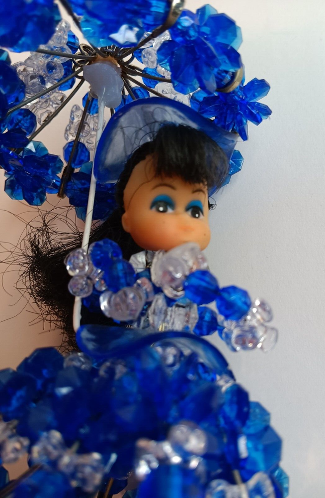 Vintage Blue Safety Pin Art Doll Lady with Southern Belle Parasol Umbrella Kitsch Decor
