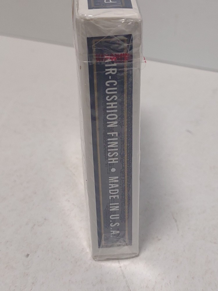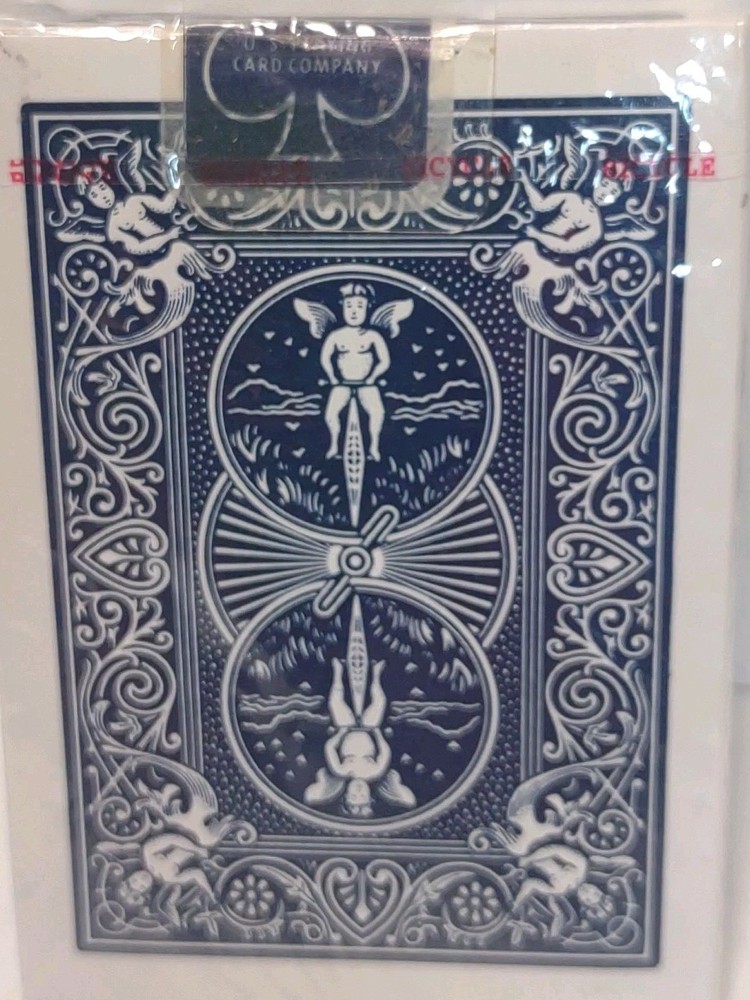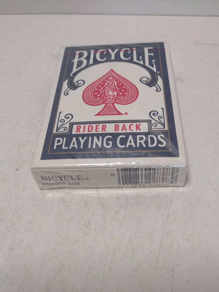 The product is a set of Vintage Bicycle Rider Back Blue Seal Playing Cards from Ohio, featuring a rare design. These modern playing cards are new and sealed, making them a sought-after collector's item for enthusiasts of vintage playing cards. The blue seal on the packaging indicates that these cards are from an older production run, adding to their appeal for collectors looking for unique and rare items.