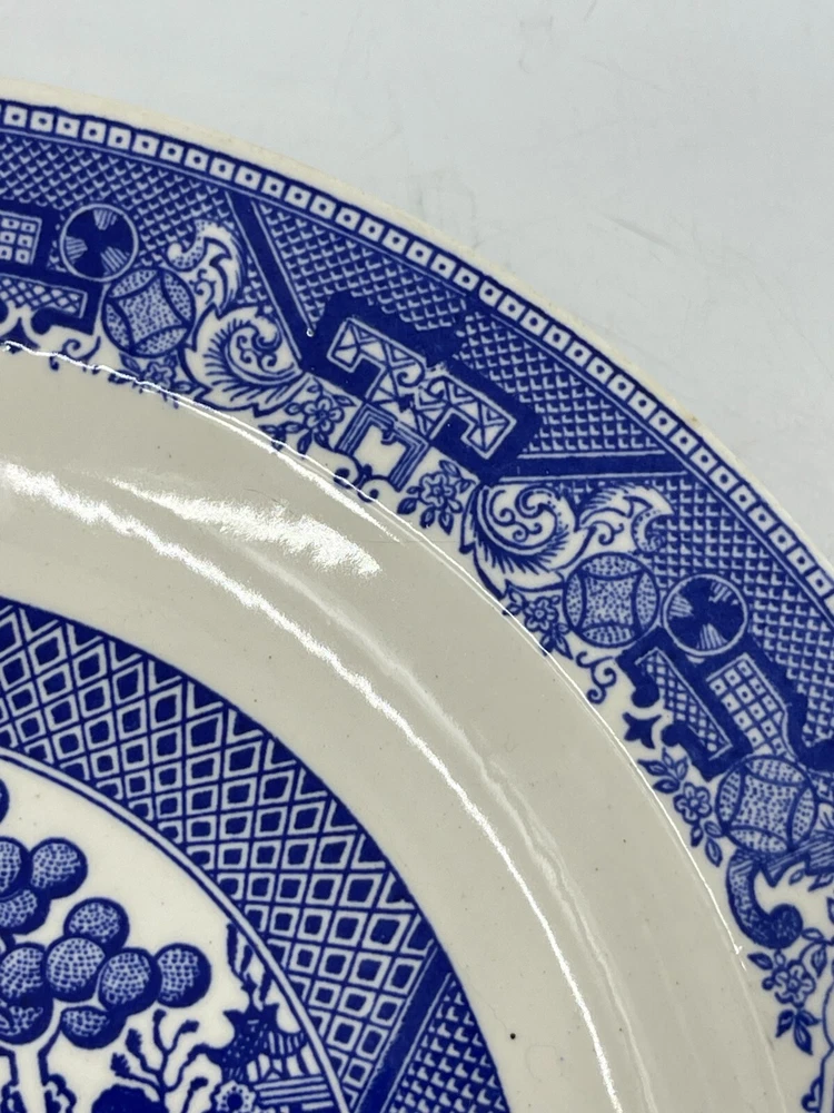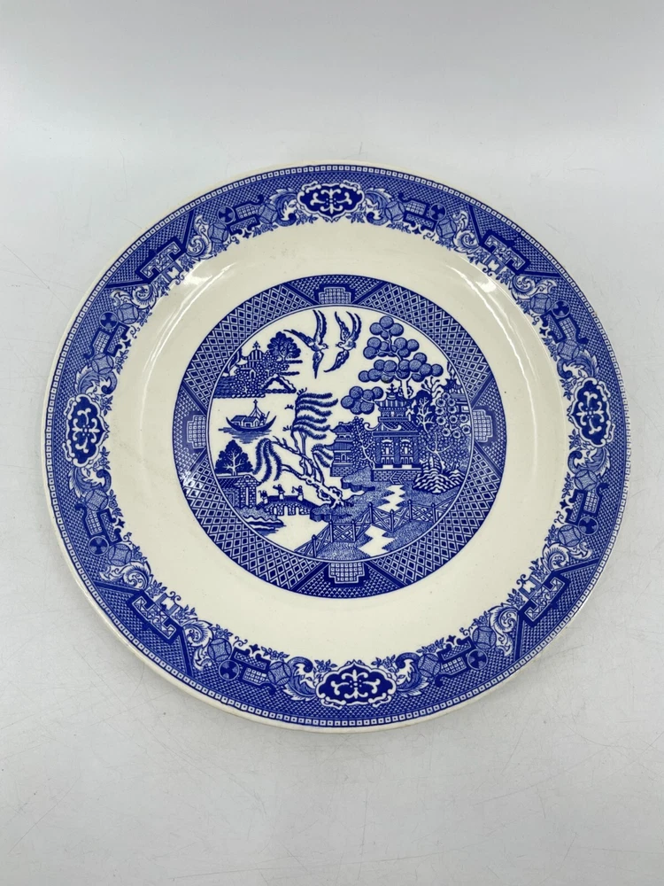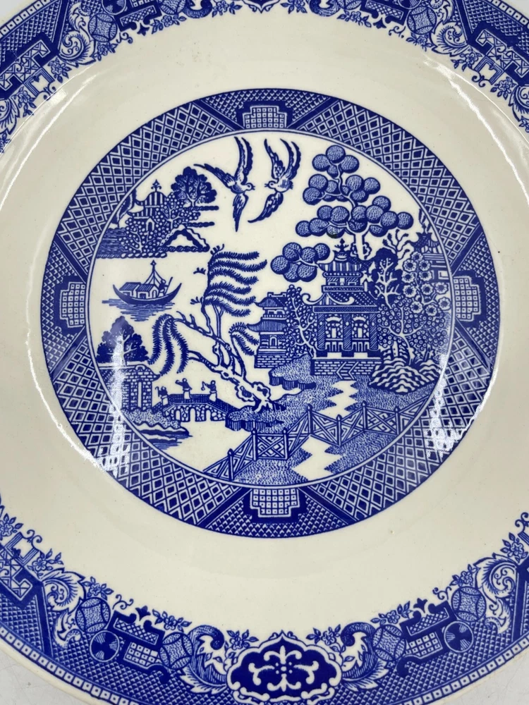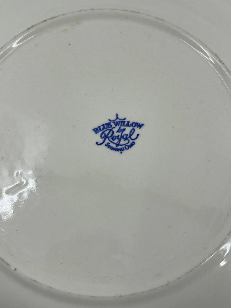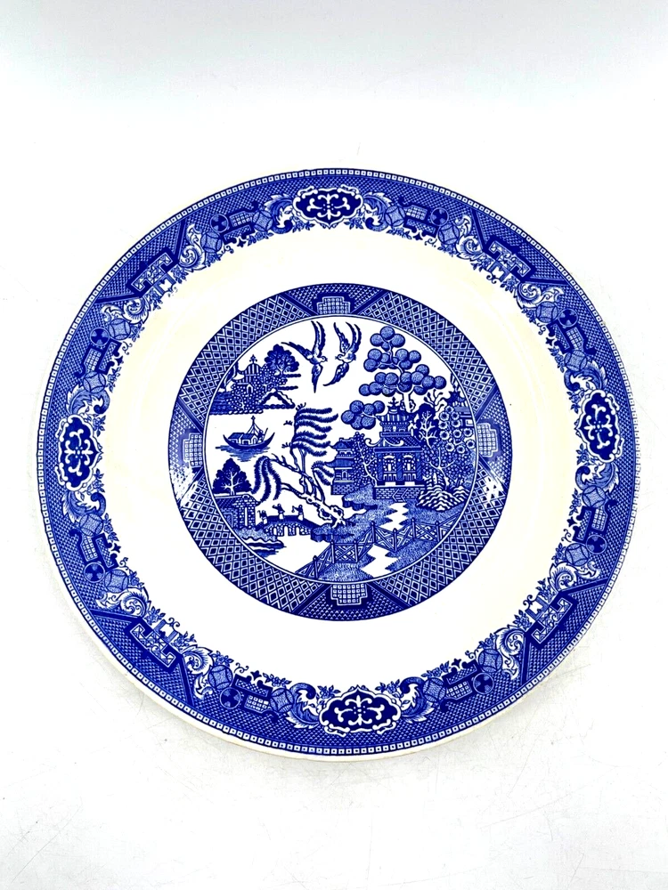 Vintage Blue Willow Royal Sebring Ohio 12" Cabinet Cake Plate Serving Platter 12" diameter. Maker mark on back. Beautiful classic piece.