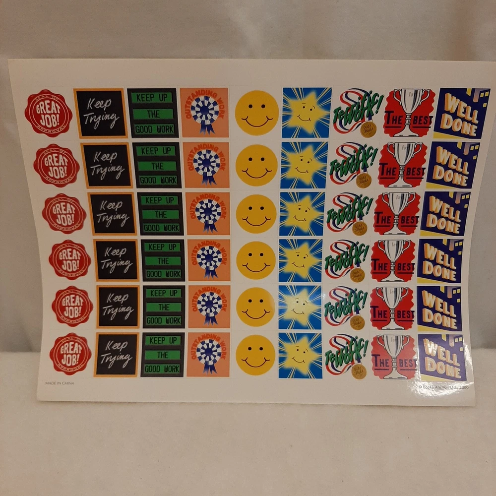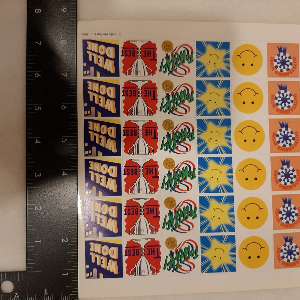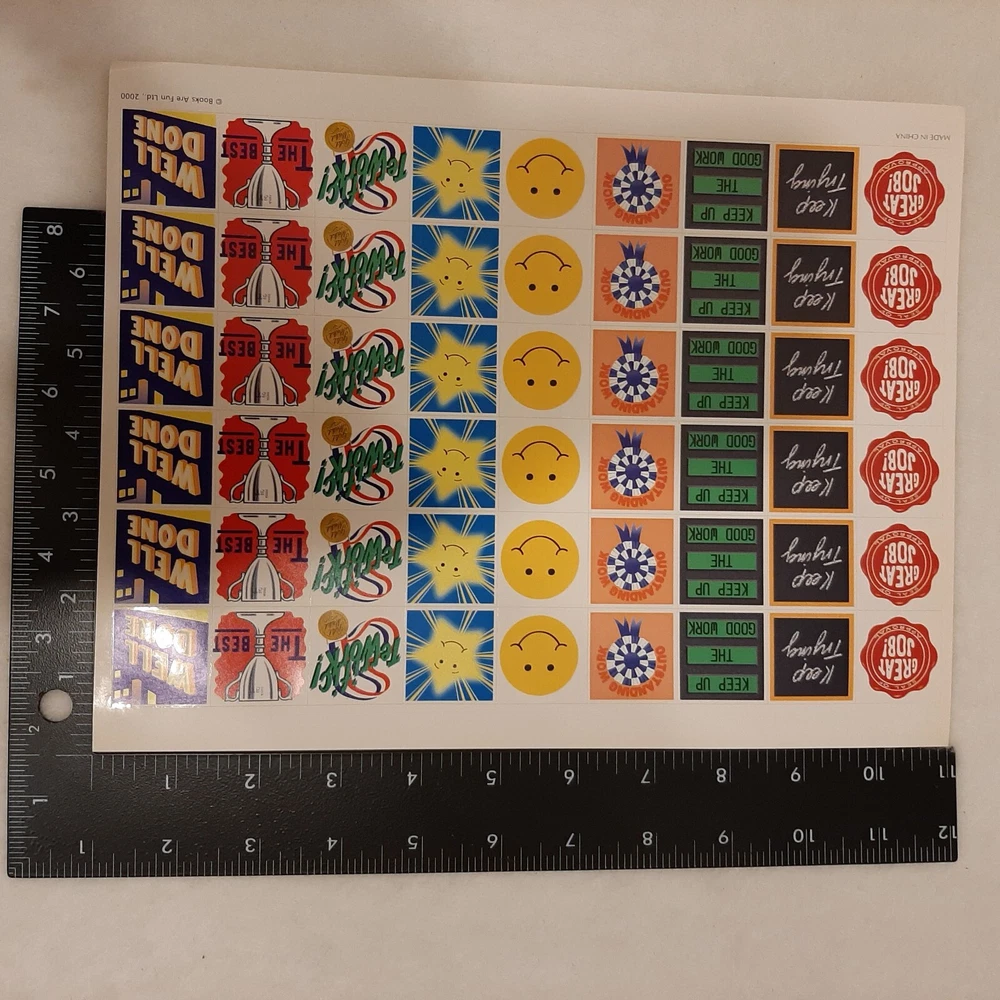 Vintage Books Are Fun Junk Journal Scrapbook Planner Stickers Supplies 1 Sheet In good pre-owned condition may show signs of wear from use/handling/storage/display. Please view all pics for condition/details/flaws/issues. SOLD AS IS In good pre-owned condition may show signs of wear from use/handling/storage/age please see all photos for details. This contains 1 Full sheet with 54 stickers. These stickers are from 2000. There are minor issues with sheets some small folds on corners please see photos 3-4 & 7. Very small marks/discoloration to border of stickers please see photo 8