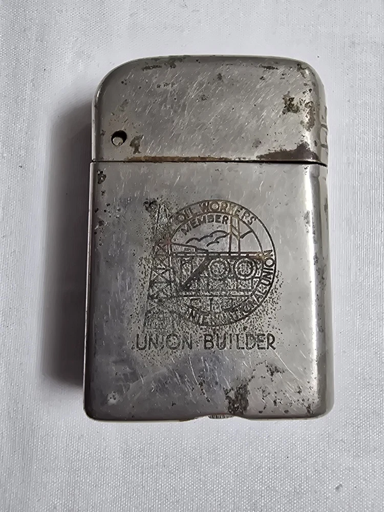 This vintage Bowers flip-top lighter is a rare find for any collector of tobacciana and oil industry memorabilia. The silver color and intricate details on the lighter make it a true gem. The brand, Bowers, is well-known for producing high-quality lighters, and this one is no exception. The lighter was designed with the Oil & Gas International Union in mind, making it a unique piece of history. Whether you're a collector or just looking for a conversation starter, this vintage Bowers flip-top lighter is sure to impress. Lighter still sparks. Lighter will need to be refueled before use. We'll combine shipping. If you are bidding or buying more than 1 item, please message us and let us know that you are still bidding or planning on buying more items. Please look at all the pictures. We took detailed pictures of the item. How the pictures look like is how the item will be shipped. Thank you for looking. Please be sure to check out my other items