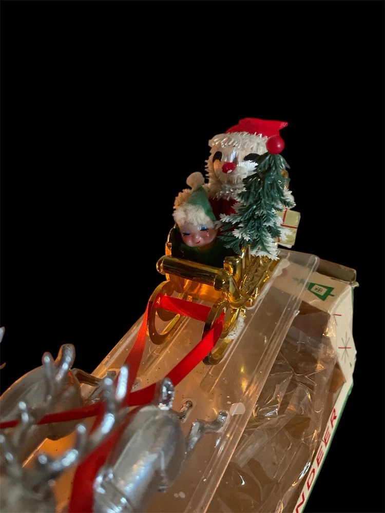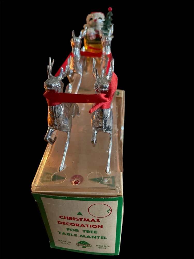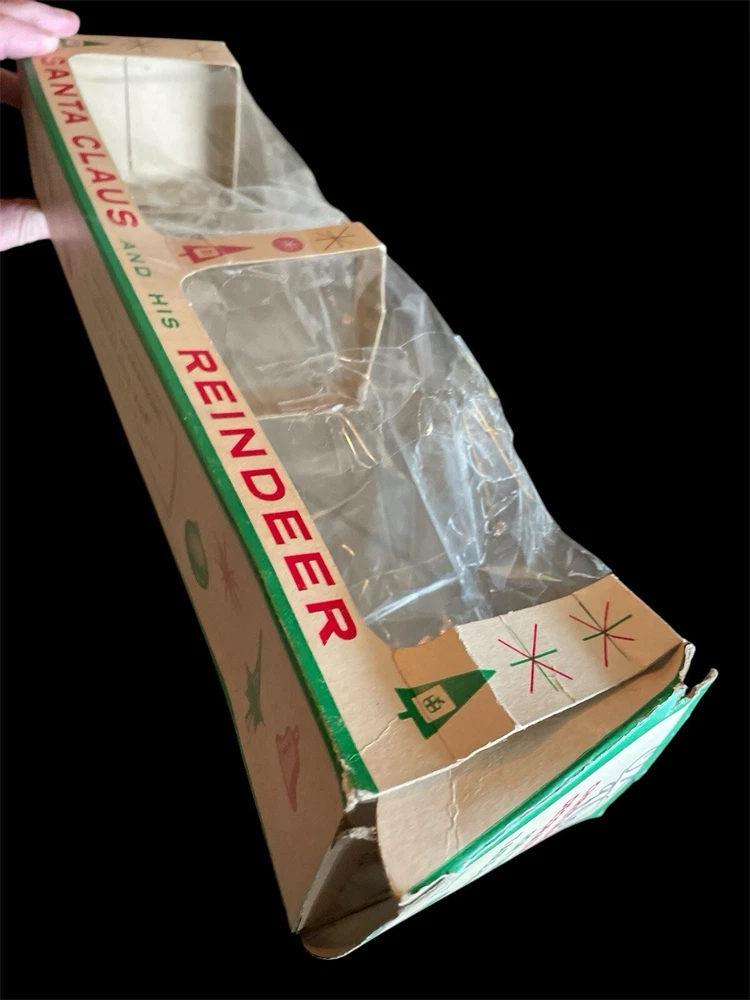 This very old Bradford figurine features an early depiction of Santa with his reindeer and elf. The highly detailed ornament is perfect for any collector or lover of Christmas decorations. The brand, Bradford, is known for their quality and this piece is no exception. The figurine is part of the Ornaments collection and is perfect for the holiday and seasonal display. It would make a great addition to any figurine collection and is sure to bring joy to all who see it. The box is in rough shape and has been taped. None of the characters have been broken,reglued,or repaired, however some of the glue at the base of them may have discolored over the years with a milky white appearance. The elf and tree are loose in the sleigh. If you have a low feedback rating, please message before making an offer to purchase.