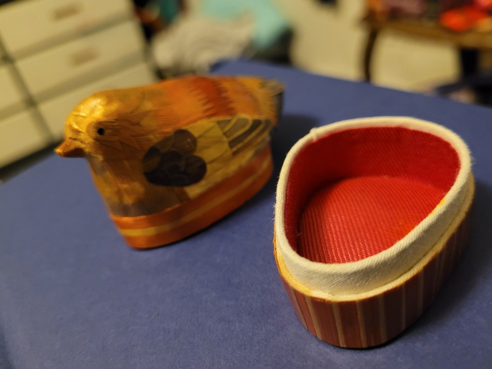 Type: Trinket Box Material: Wood Style: 1980s Finish: Antique Shape: Round Size: Small Color: Brown Subject: Bird Collection: Animals
