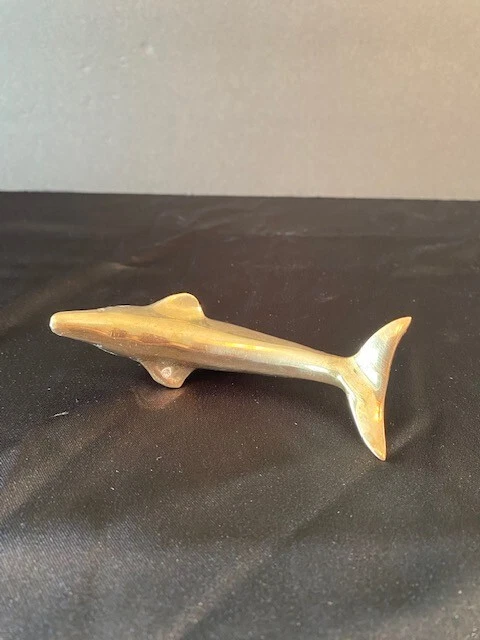 This vintage brass dolphin figurine is a beautiful addition to any collection. Crafted in Taiwan, this handmade piece is a must-have for any dolphin or marine life enthusiast. The intricate details of the dolphin's skin and fins are impressive, making it a great conversation starter for any beach or ocean lover. The figurine is made from high-quality brass, ensuring its durability and longevity. It comes with a bundle listing of no, and has not been modified in any way. This collectible is perfect for anyone who loves animals, and is a great way to add a touch of elegance to any desk or display.