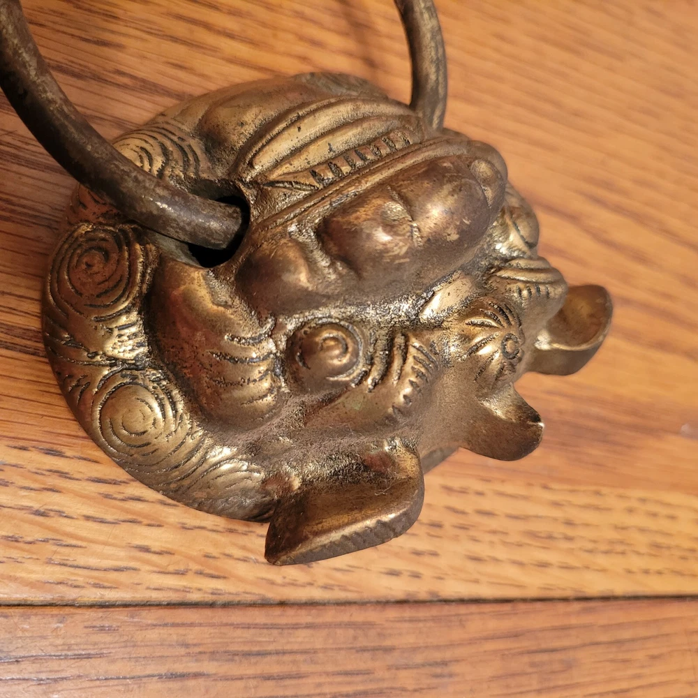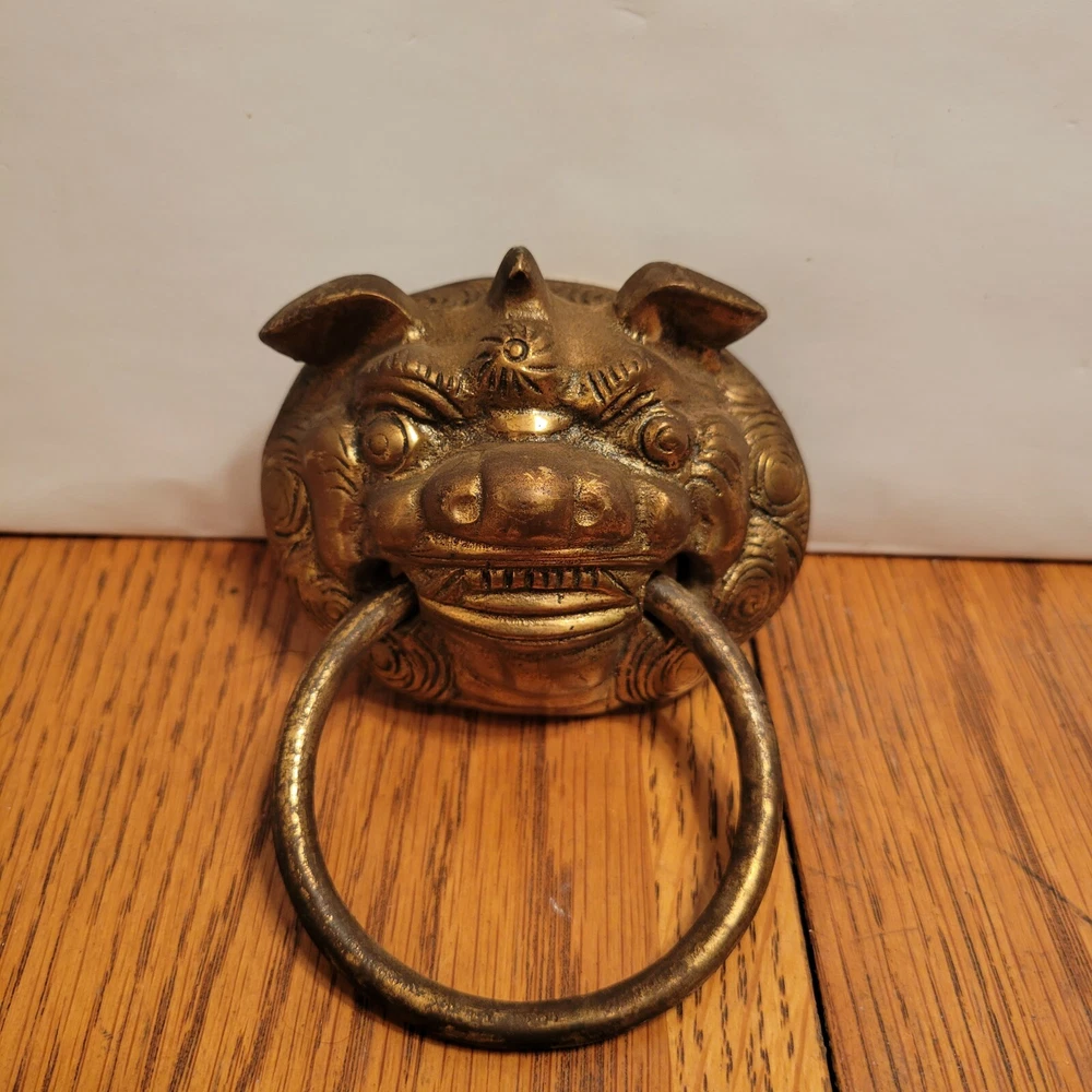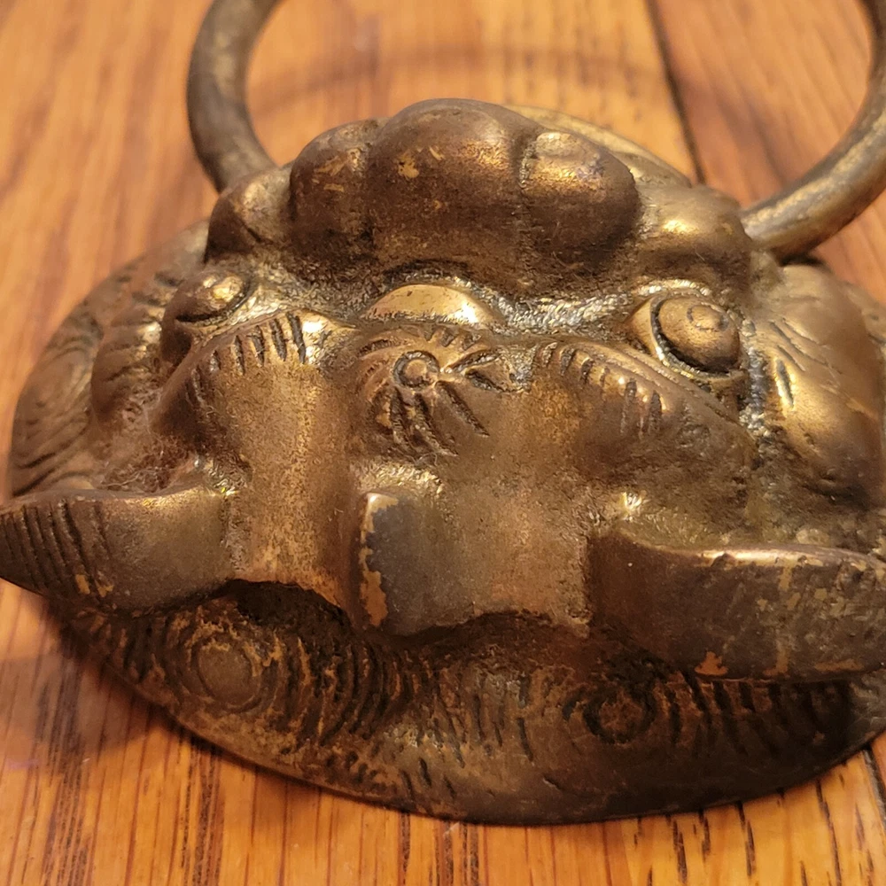Vintage Brass Fengshui Lion Foo Dog Guardian Head Door Knocker. See pics for condition