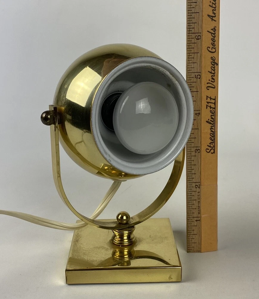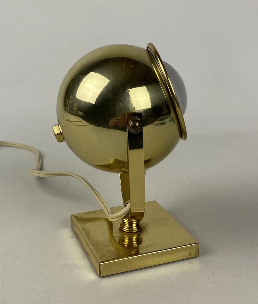 Vintage Brass Lamp Atomic Eyeball Orb MCM Globe Sconce Rotating 6" Tall