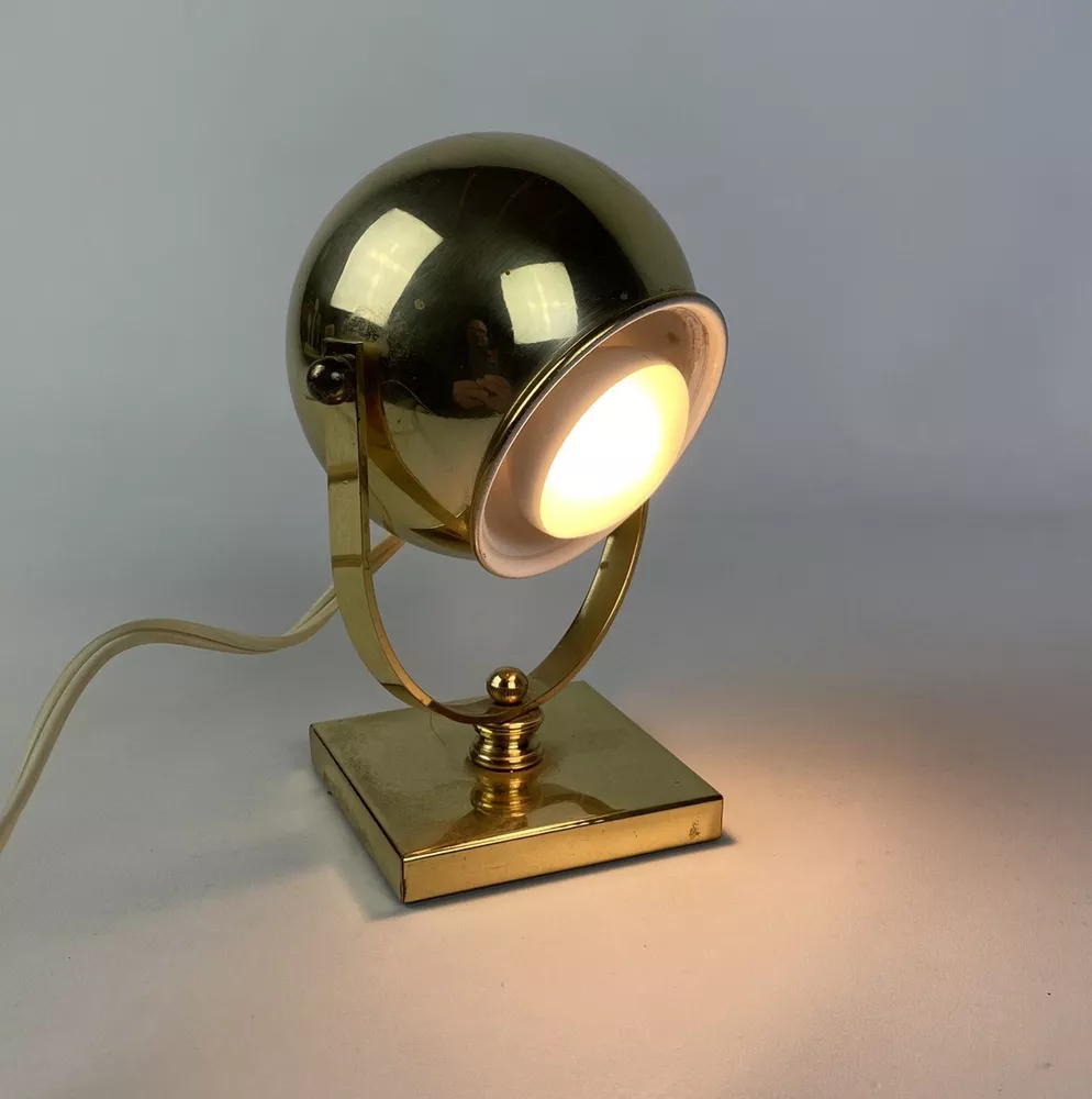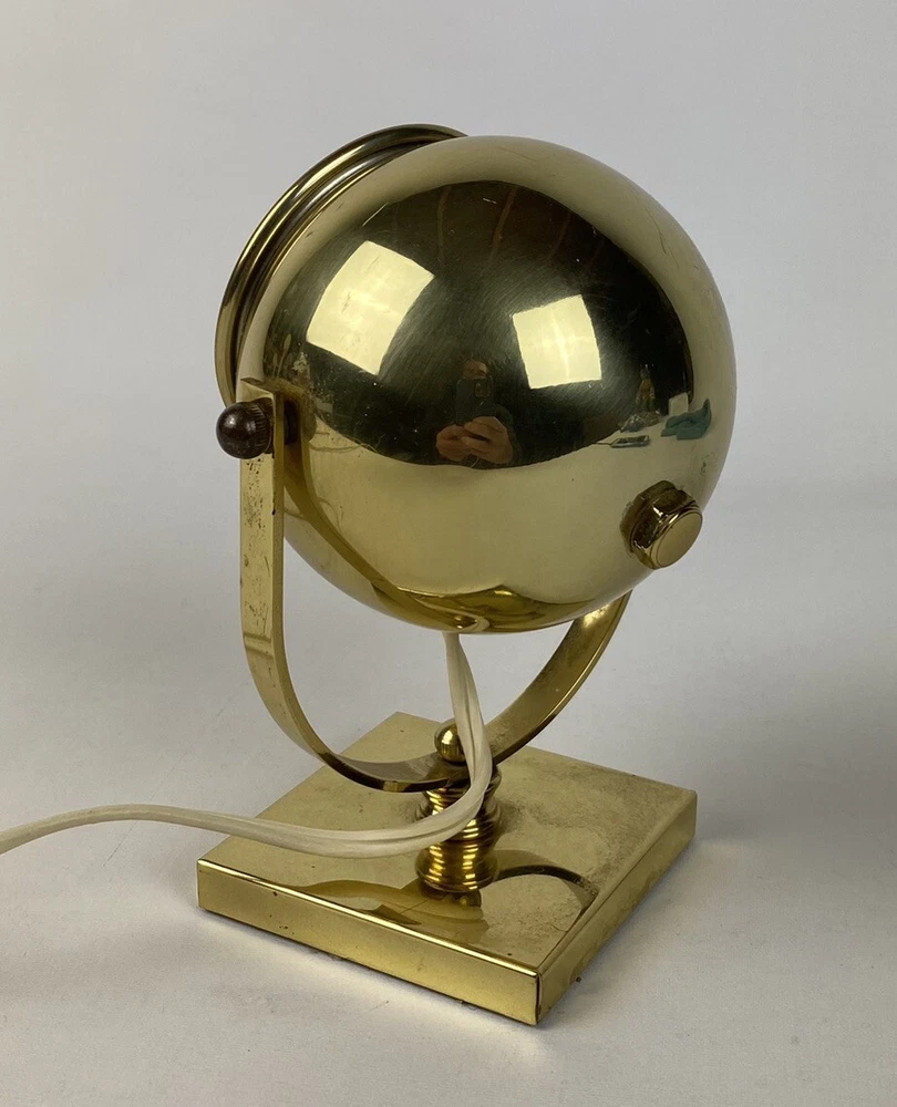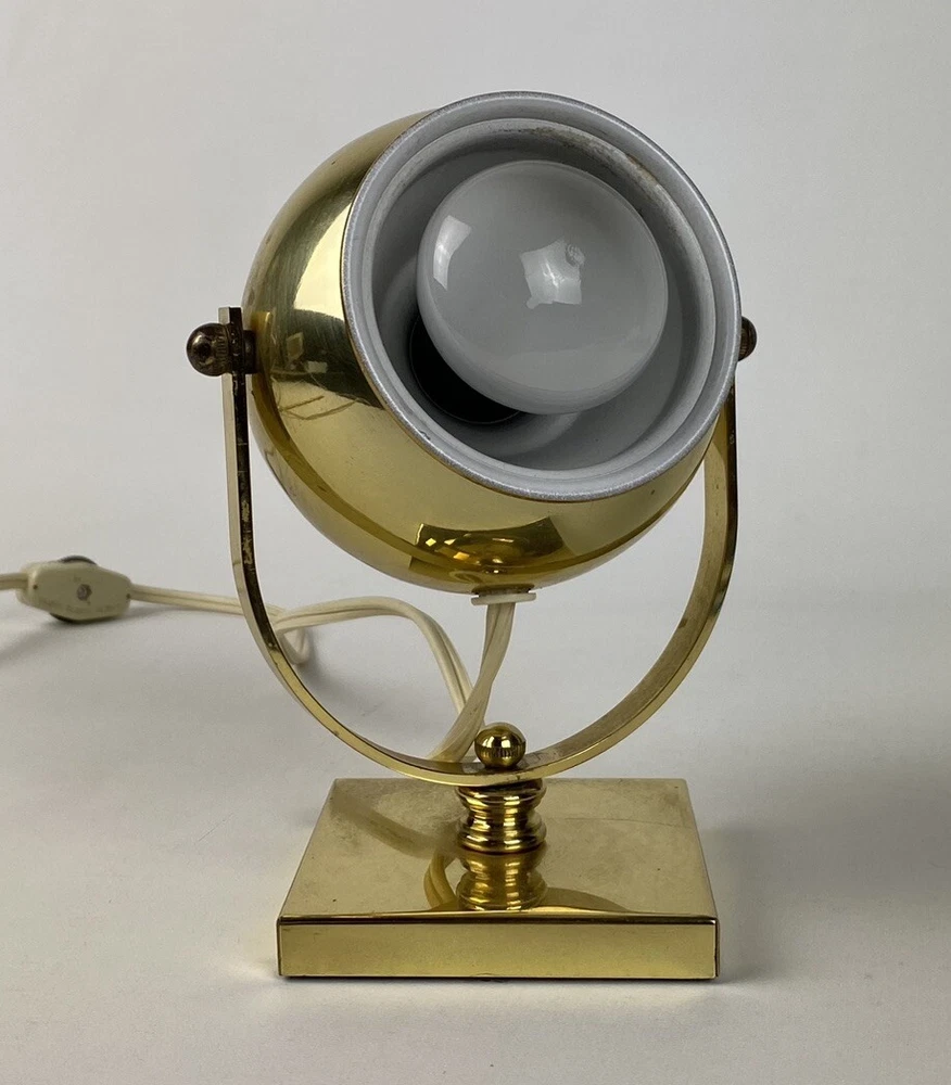 Lighting Technology: Halogen Vintage: Yes Type: Desk Lamp Material: Brass, Metal Features: Adjustable, Bulb/Tube Included Number of Lights: 1 Power Source: Electric Control Style: Cord Switch Original/Reproduction: Original Antique: No Color: Gold Brand: Reed & Barton Cord Color: White Time Period Manufactured: 1970-1979 Style: Mid-Century Modern Item Diameter: 6 in Item Height: 6 in Size: Small