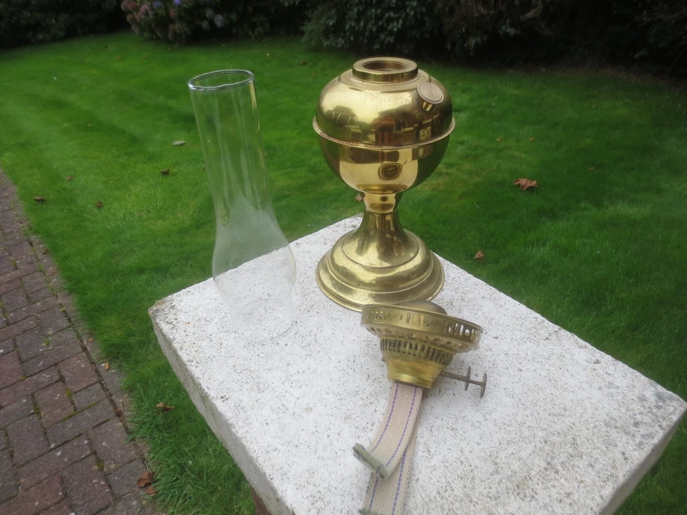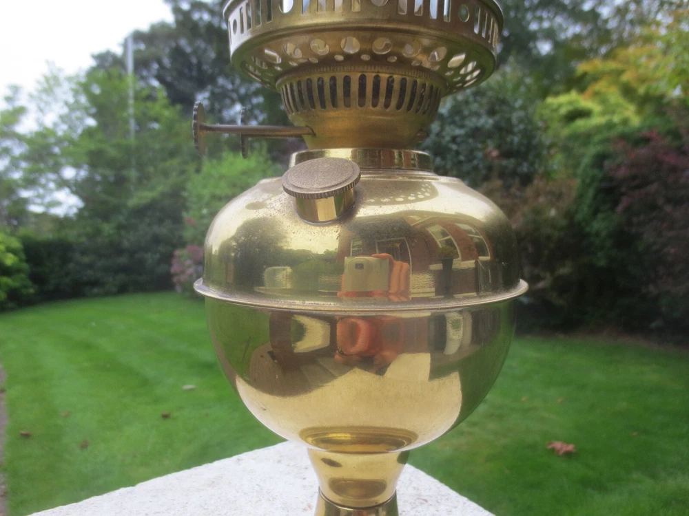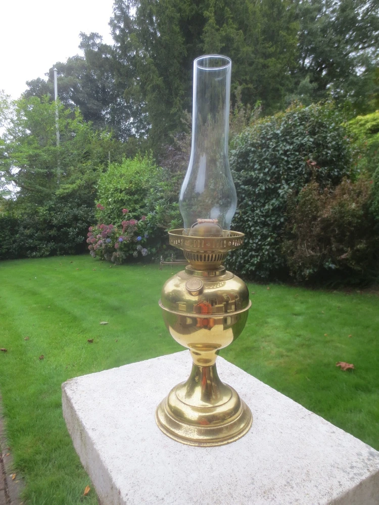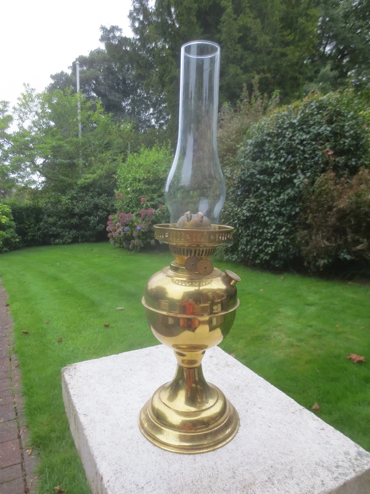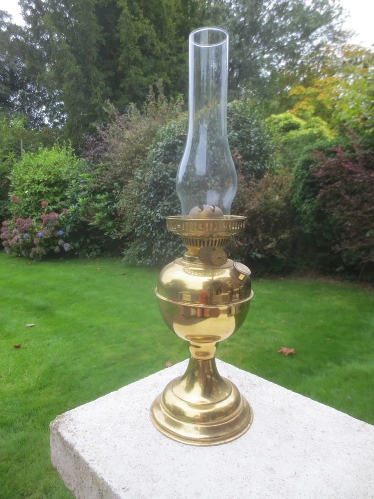 UP FOR AUCTION IS THIS OLD VINTAGE BRASS TABLE OIL LAMP, COMPLETE WITH CHIMNEY. THE LAMP IS COMPLETE AND FULLY WORKING. BRASS BASE AND FONT BRASS FONT WITH REMOVABLE FILLER CAP ENGLISH MADE TWIN DUPLEX BURNER IT HAS FULLY WORKING WICK WINDERS AND HAS SOME WICK STILL IN IT ROUND BULGE CHIMNEY THE LAMP WILL BE WELL PACKED THERE ARE AGE RELATED MARKS, DENTS, SPLITS AND IMPERFECTIONS ASSOCIATED WITH ANTIQUE PARTS. PLEASE NOTE, ANTIQUES WHICH ARE MANY YEARS OLD WILL NOT BE IN BRAND NEW AND UNTOUCHED CONDITION. ANY MAJOR DAMAGE OR FAULTS I WILL TRY AND POINT OUT. EVEN WHEN THEY ARE IN GREAT CONDITION, THEY WILL HAVE SOME WEAR COMMENSURATE WITH THEIR AGE AND USE. PLEASE TAKE THIS INTO ACCOUNT. . FOR THE CORRECT OVERSEAS POSTAGE PLEASE CONTACT ME AS ALL DESTINATION PRICES VARY THERE IS SOME WICK WITH THE LAMP.