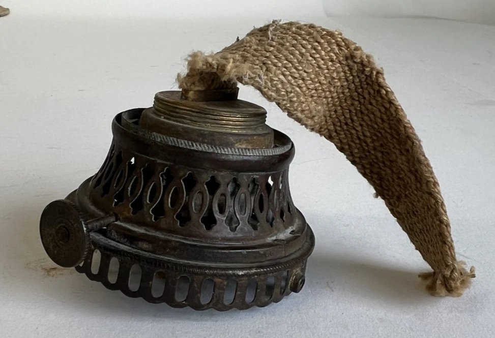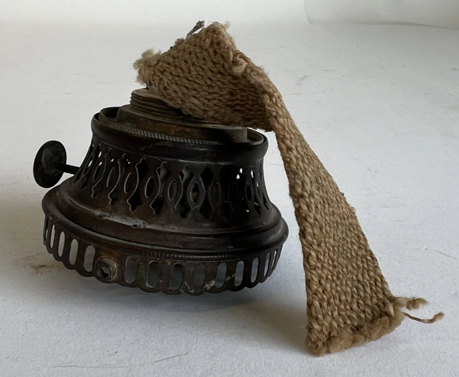 Vintage Brass Oil Lamp Burner with Unused Wick (LSX) 6913 Functional Turn Knob