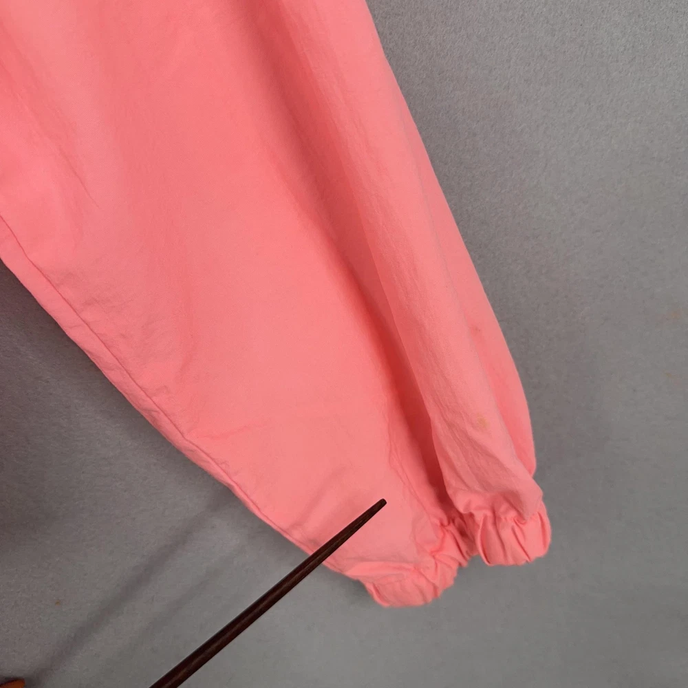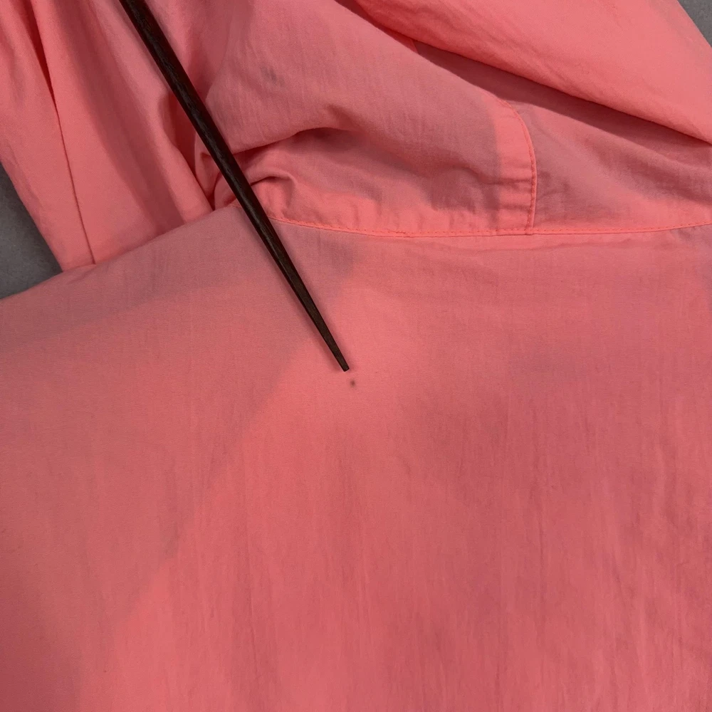 Vintage Breezin Windbreaker Jacket Womens Small Pink Nylon Hooded 80s 90s Shows general wear with several flaws. Small snag or tiny hole on lower front and multiple faint spots or discoloration on front, sleeve, and back, all shown in photos. Zippers, drawstrings, and elastic remain functional with no major structural damage. Brand: Breezin Performance Wear Item: Vintage hooded windbreaker jacket in a bright pink / coral color. Material: 100% nylon (per tag), lightweight shell. Tag size: Adult Small. Country of origin: Made in Hong Kong, suggesting 1980s–1990s era production. Design details: Half-zip pullover style with drawstring hood, large front zip pocket across the midsection, elastic cuffs, elastic hem with side drawcords, vented back yoke for breathability, and small multicolor Breezin logo patch at front hem. Style/Label info on neck tag: "Breezin Performance wear", RN 4200. Features: Lightweight nylon shell, pullover anorak style, adjustable hood and hem drawcords, front zip pocket for storage, elasticized cuffs, retro neon color. 22807 Measurements: - Previous washings may change the sizing written on the tag. - Please refer to the photos above for all measurements. - Please compare our measurements to that of one of your favorite garments. - Please note, item measurements are approximate . All items are bagged and sealed after being photographed, then stored in a smoke free environment to ensure the item is exactly the same as when photographed. All items have been washed per eBay standards & policies. I carefully package and ship daily. Feel free to contact me with any questions.