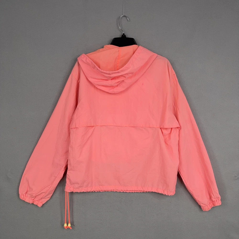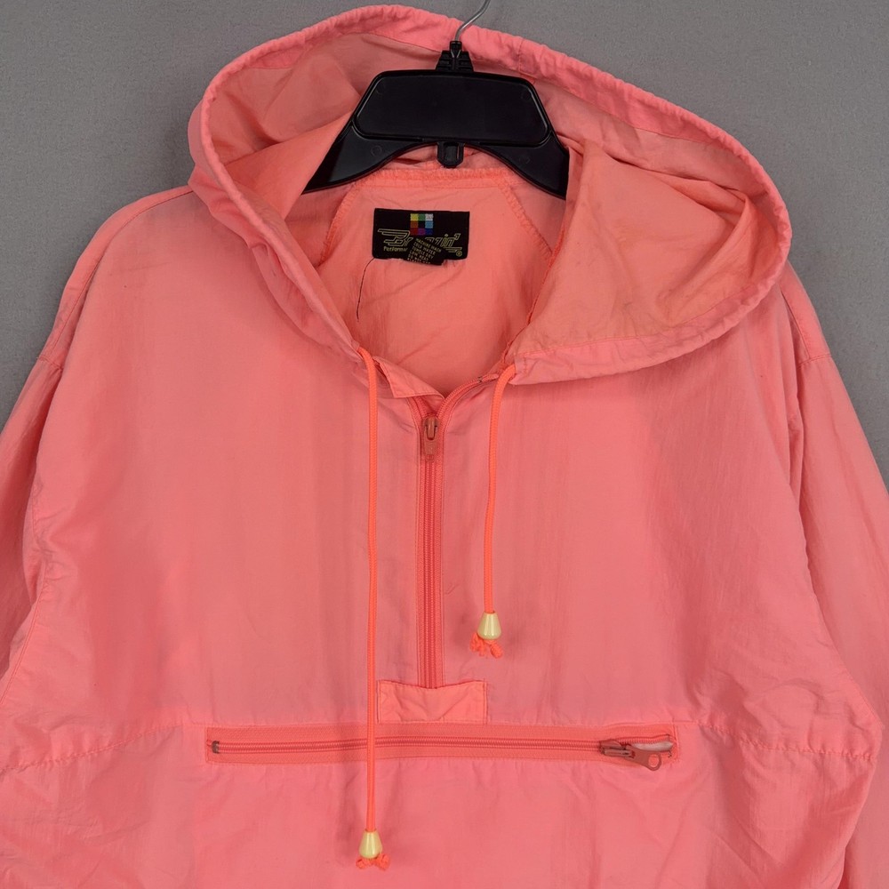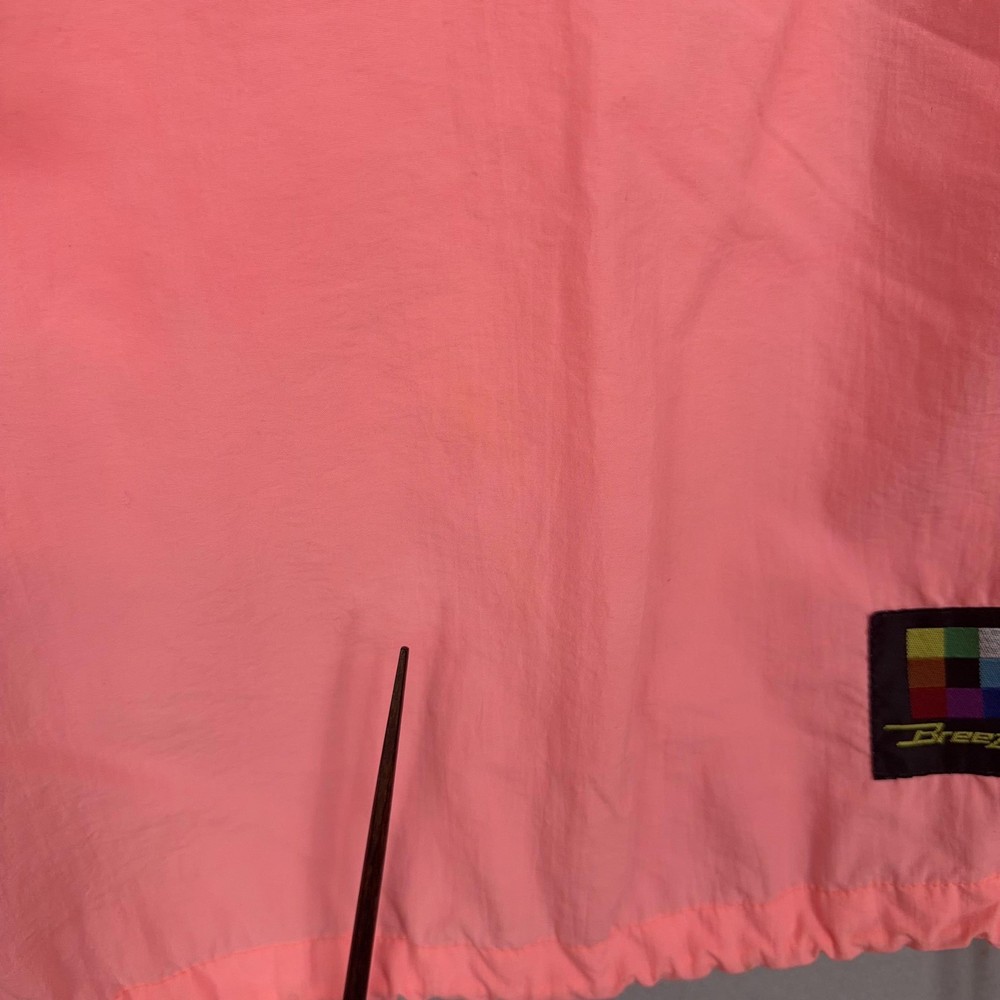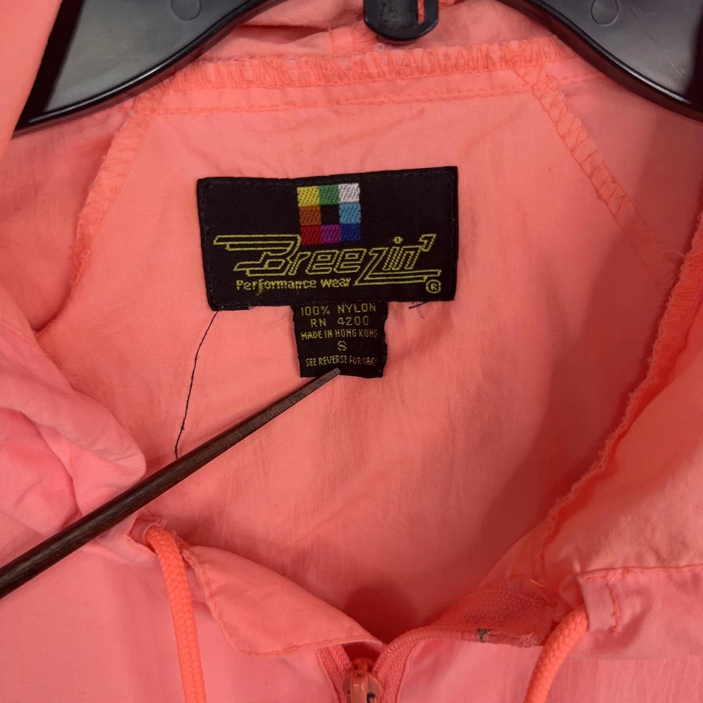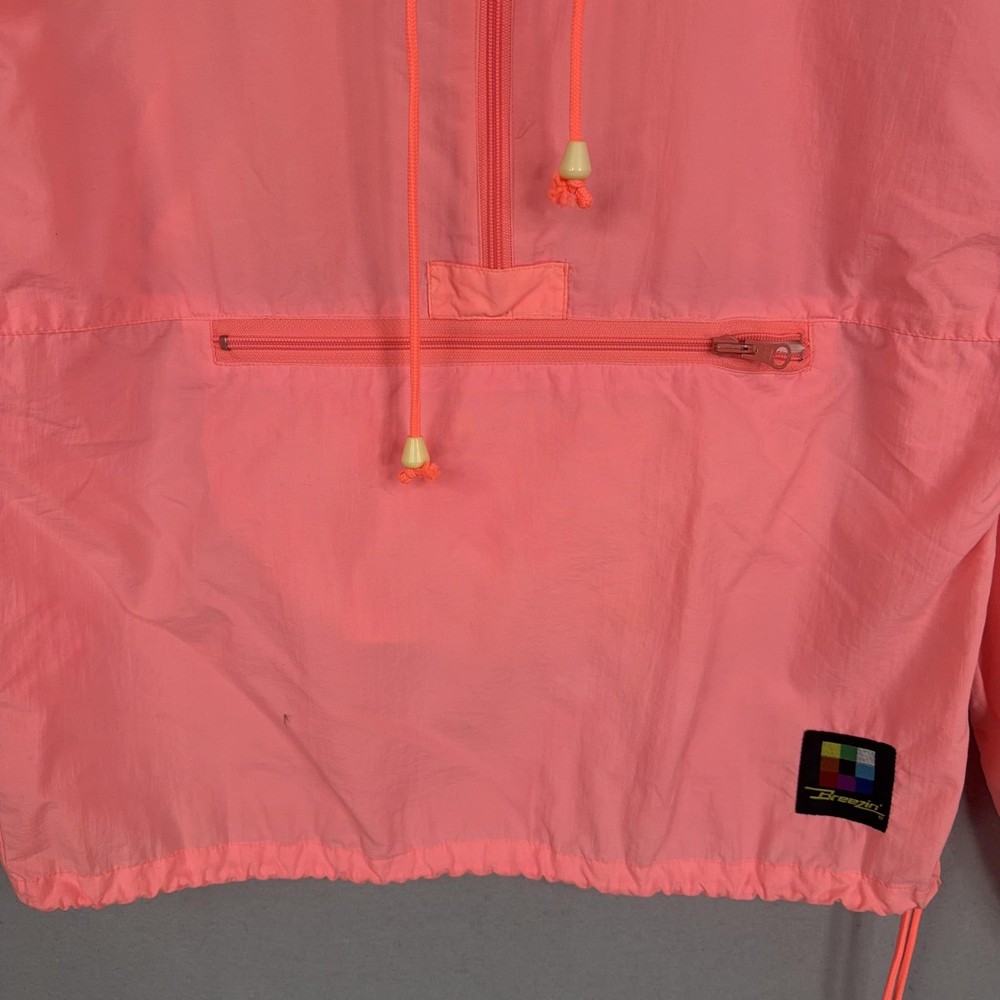 Type: Jacket Outer Shell Material: Nylon Size Type: Regular Vintage: Yes Size: S Season: Spring, Summer, Fall Brand: Breezin Closure: Zip Features: Hooded, Lightweight, Pockets, Unlined Pattern: Solid Style: Anorak Country of Origin: Taiwan Jacket/Coat Length: Short Theme: Outdoor Department: Men Accents: Logo, Zipper Color: Pink Occasion: Casual