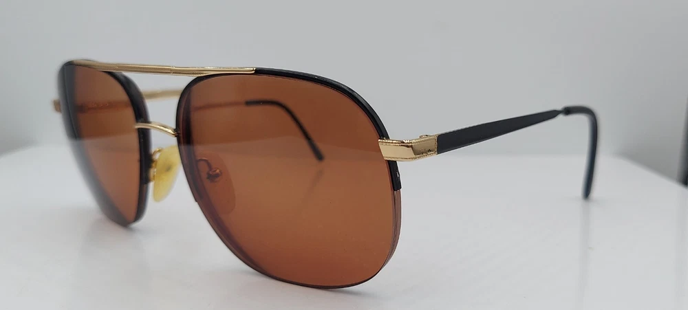 Vintage Brian Black Gold Pilot Half-Rim Metal Sunglasses FRAMES ONLY Please see photos for condition of frames. **Listing is for a vintage pair of used frames * Signs of wear / use are to be expected. FINAL SALE NO RETURNS. ***LISTING IS FOR FRAMES ONLY*** LENSES HAVE BEEN ALTERED AND NEED TO BE REPLACED TO SUIT YOUR NEEDS*** LENSES ARE NOT IN USEABLE OR WEARABLE CONDITION. ***FRAMES WILL SHIP AS PHOTOGRAPHED WITH LENSES INTACT. If you are truly unhappy with your purchase, please reach out to us and we will do our absolute best to make things right.