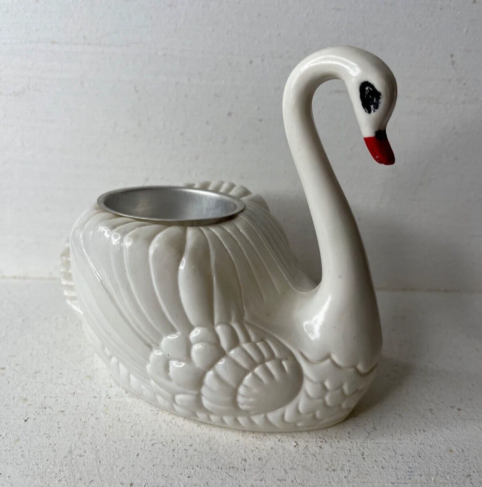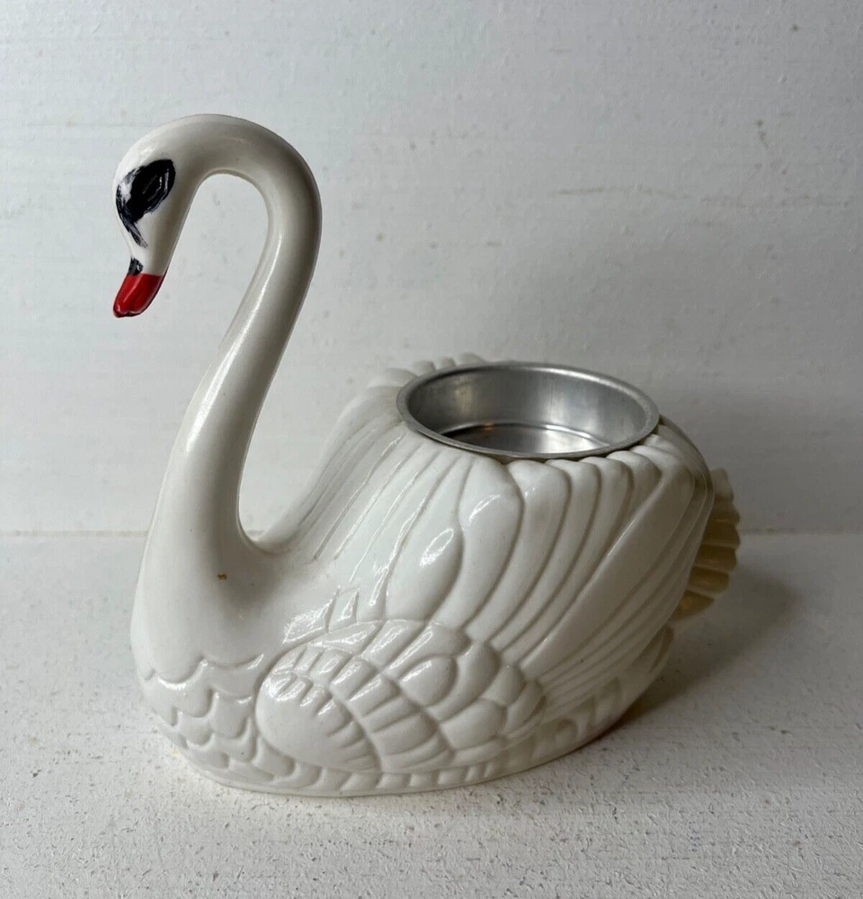 Vintage British Colony of Hong Kong Plastic Swan Tea Light Candle Holder 5 inches tall 6 inches long 3 inches wide