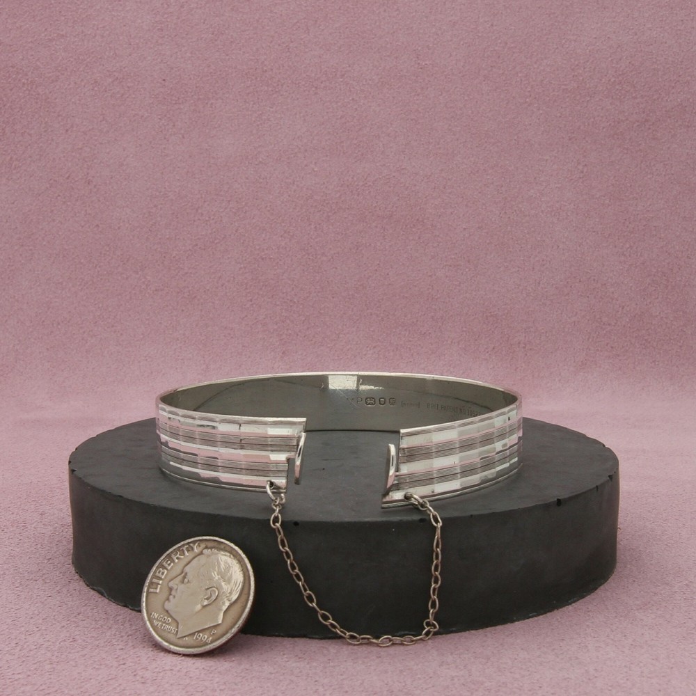 sterling silver vintage british striped bangle bracelet size 6.5in Pre-loved but in great condition - Weight - 19.8g Size - 6.5in Width - 12mm Item ID - ABN13402217