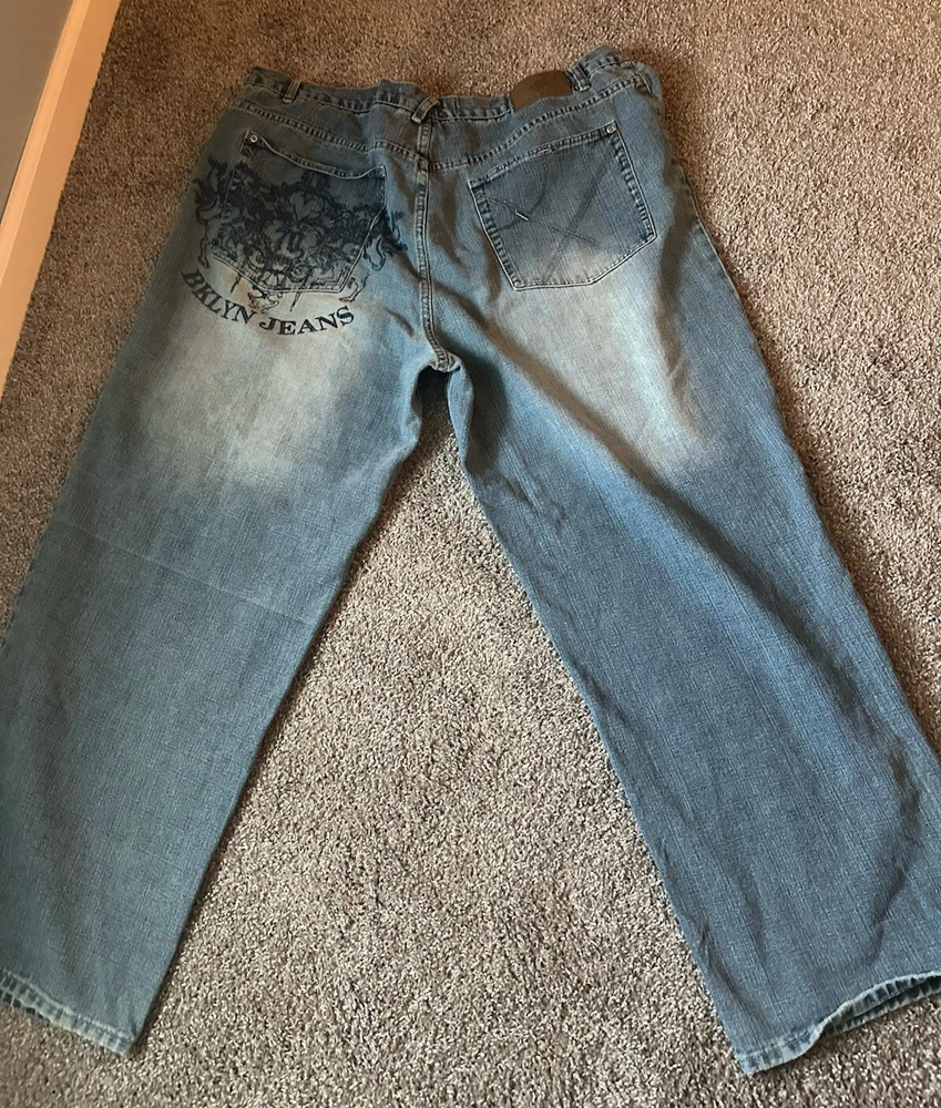 Vintage Brooklyn BKLYN Blue Jeans 48x32 Hip Hop Baggy Wide Leg 90s Skater