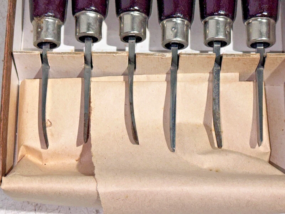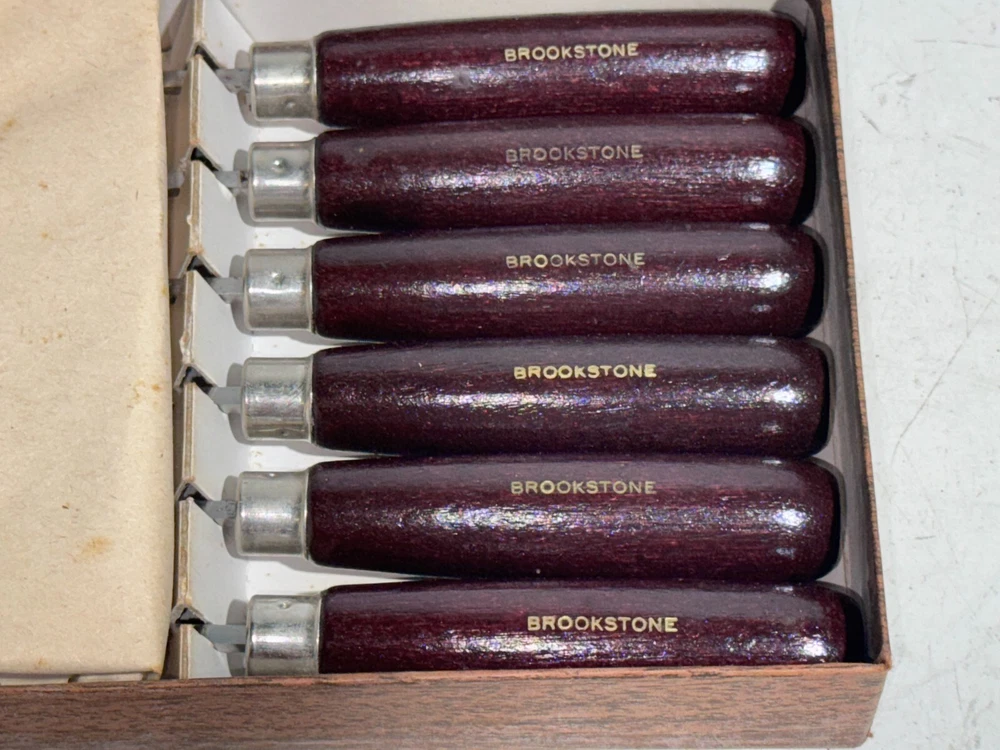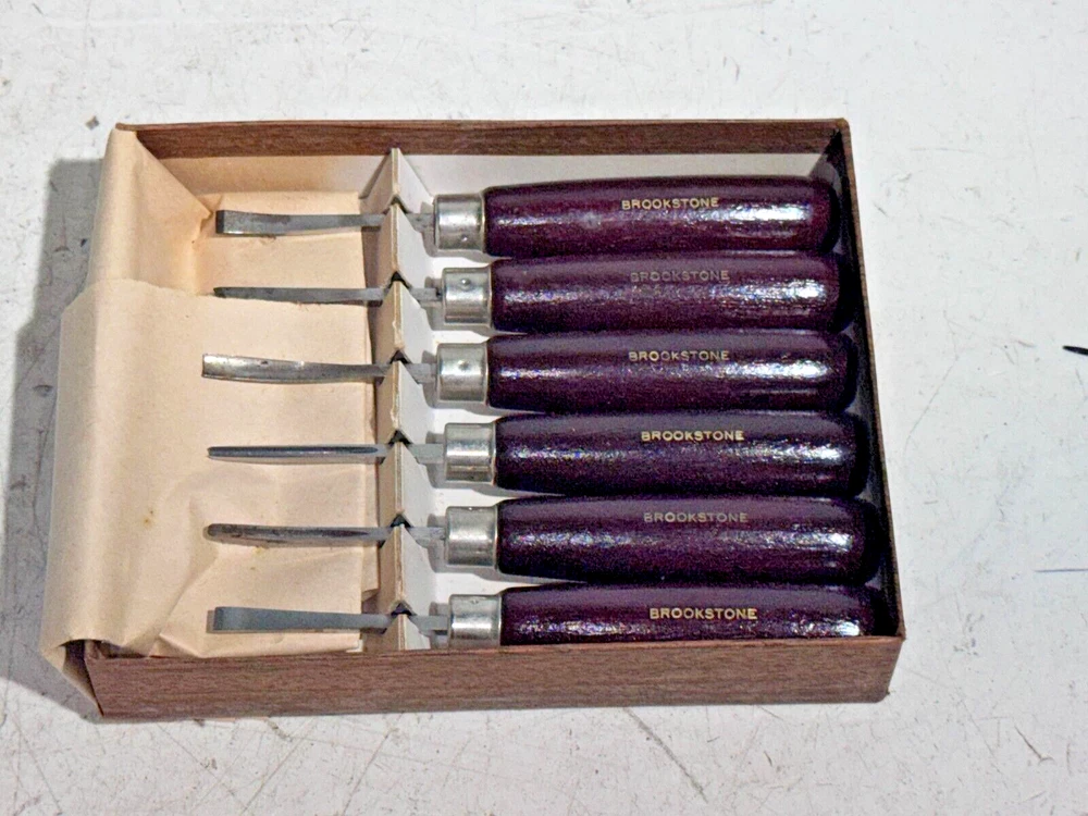 Hello, this listing is for a Vintage Set of 6 Brookstone Woodcarving Chisels. Good Condition. Free shipping within the USA. Please ask any questions first.
