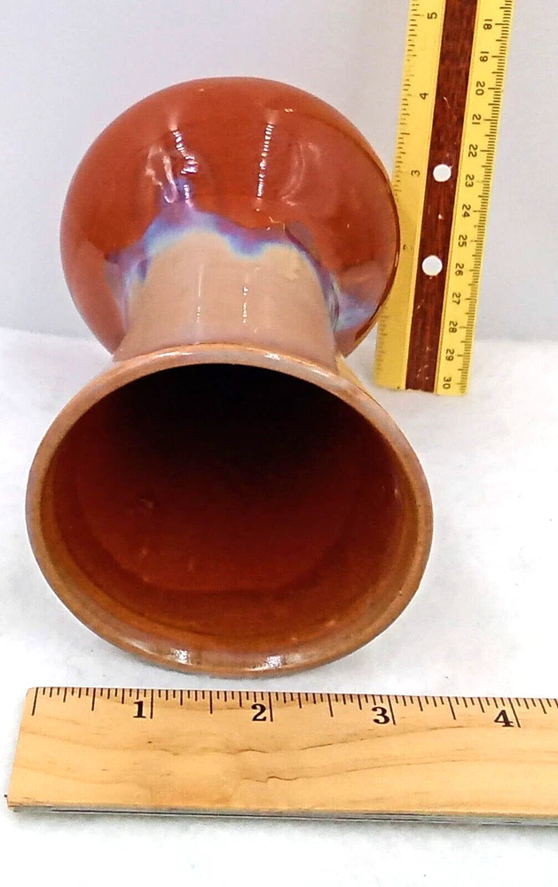 This gorgeous vase is a stunning blend of vintage charm and artistic flair! The rich brown drip glaze with hints of blue and purple gives it a unique, handcrafted look. Perfect for adding a touch of elegance to any space—great for flowers or standalone decor. Arrived carefully packaged, just as described. The seller provides excellent service with fair shipping. A fantastic find for pottery lovers!