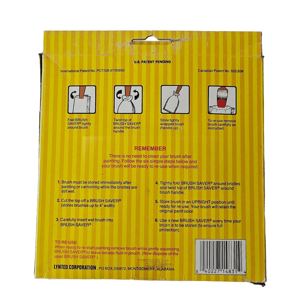 The box is still intact but is has some bent and ripped edges/flaps. Brush savers are fully sealed and have never been opened. Make your painting and home improvement projects easy with this set of 5 Vintage Brush Savers Paint Brush Solution pouches from Lynted Corporation. These nontoxic and odorless pouches are perfect for keeping your paint brushes in good condition without worrying about any harmful chemicals. The brush savers are ideal for all types of painting projects and and allow you to stop and restart without cleaning your brushes. Please review the photos for additional details, and as always, feel free to reach out with any questions. Thank you for viewing this listing.