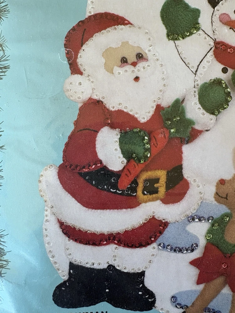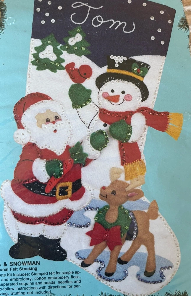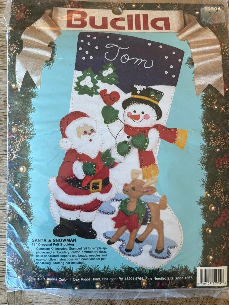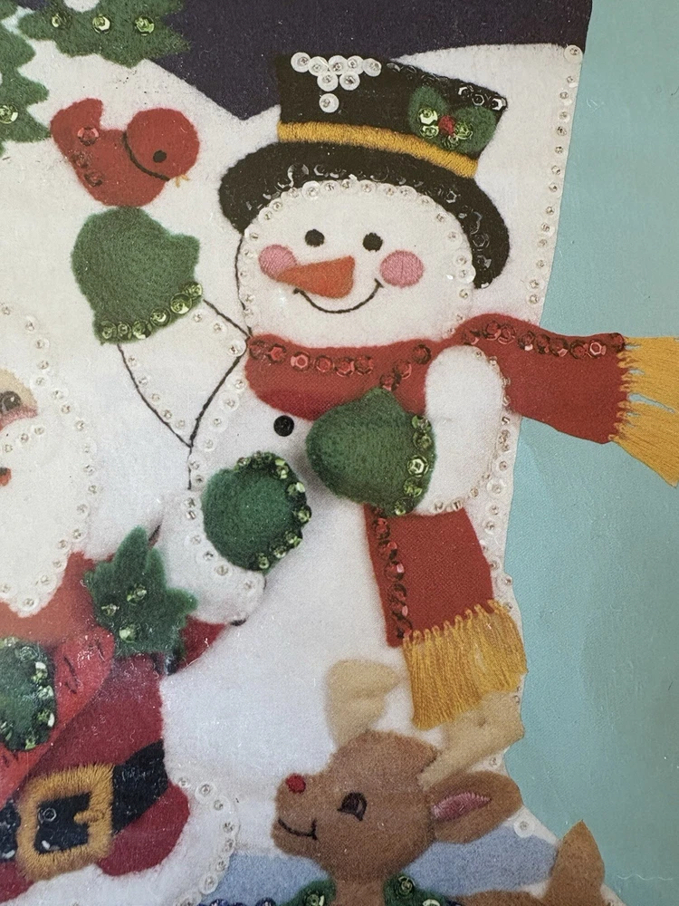 Vintage Bucilla 82904 Christmas Felt Stocking Kit Santa Reindeer Snowman 90s NEW To upcycle, I reuse shipping material as often as possible. Buy more from my store and save on shipping.