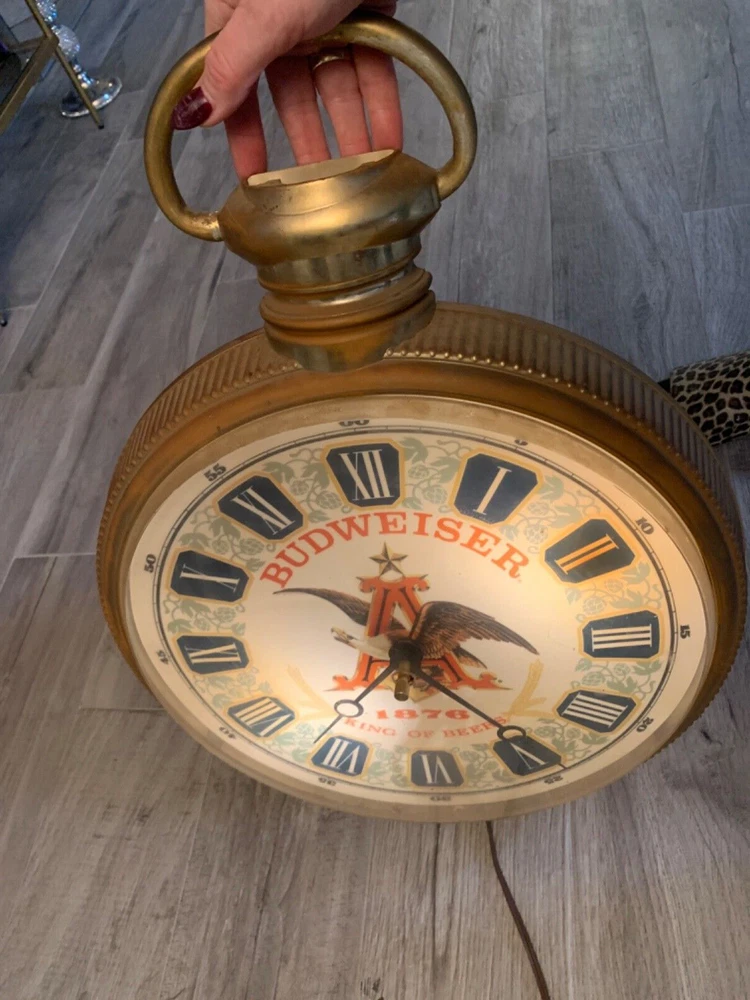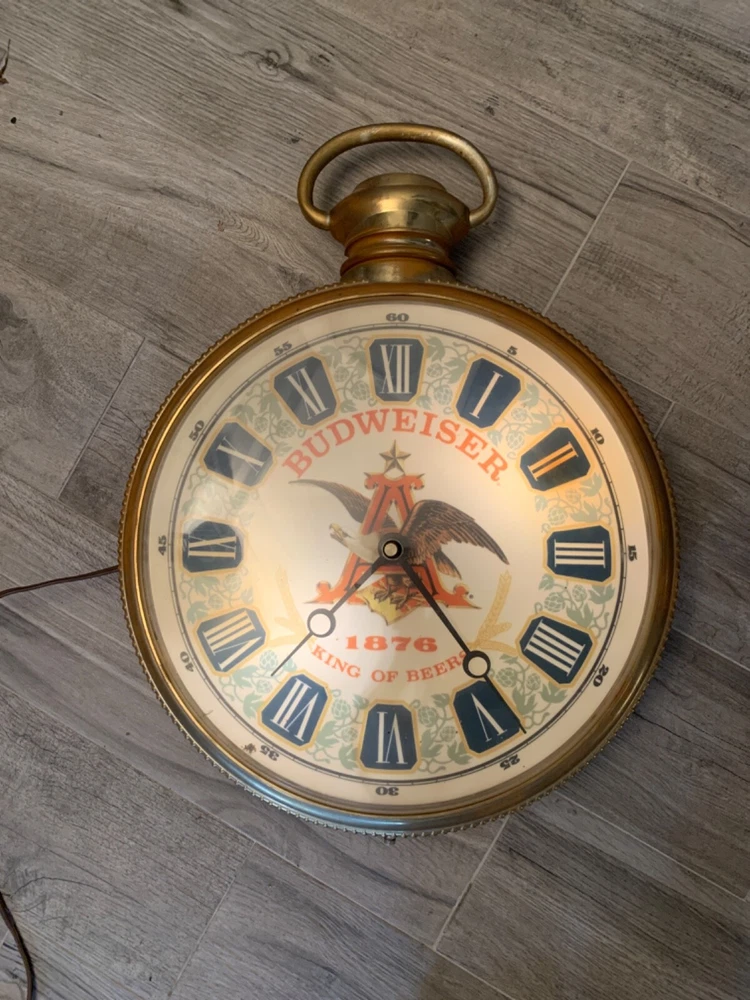 Vintage Budweiser Beer Lighted Pocket Watch Sign Working
