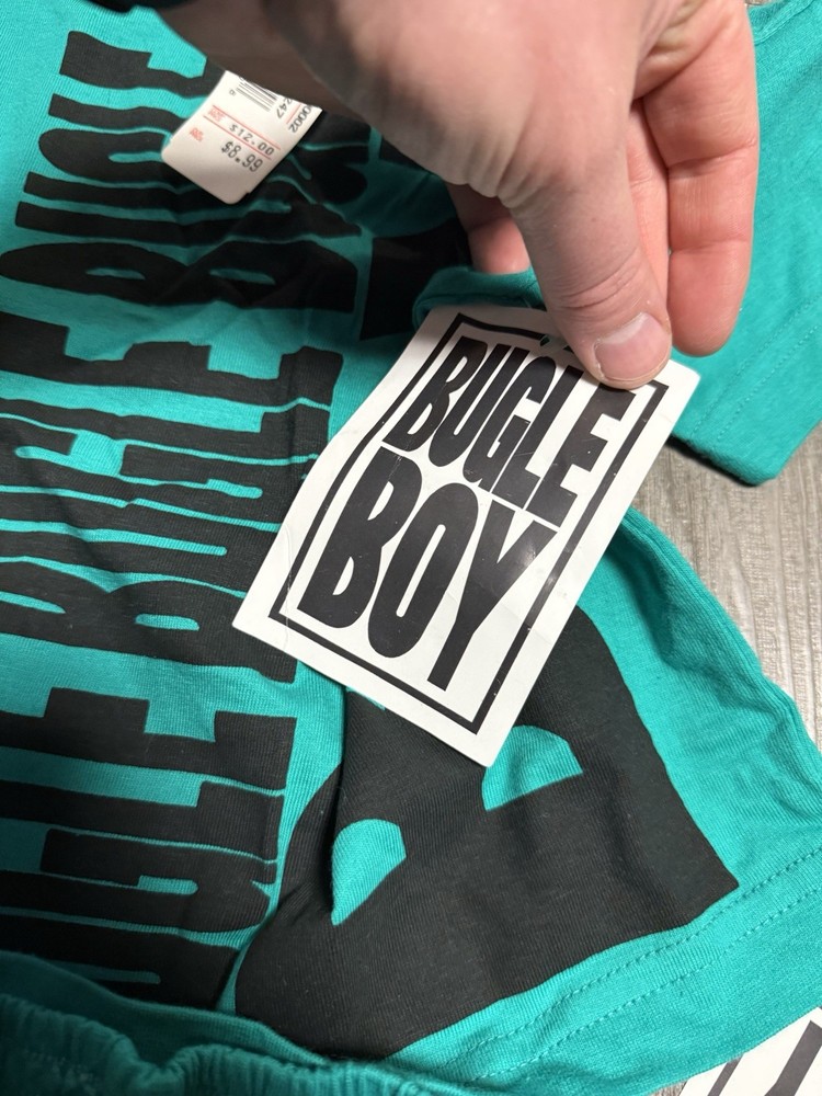 This Vintage Bugle Boy Short Sleeve Set in green is a classic fit shirt for boys in size 3T. Made of a cotton blend material, this collared shirt features a sailor collar style and is suitable for all seasons. With a vintage touch and a hint of retro style, this casual shirt is perfect for everyday wear or even for a baseball activity. The Bugle Boy brand adds a nostalgic element to this basic yet stylish top for young boys.