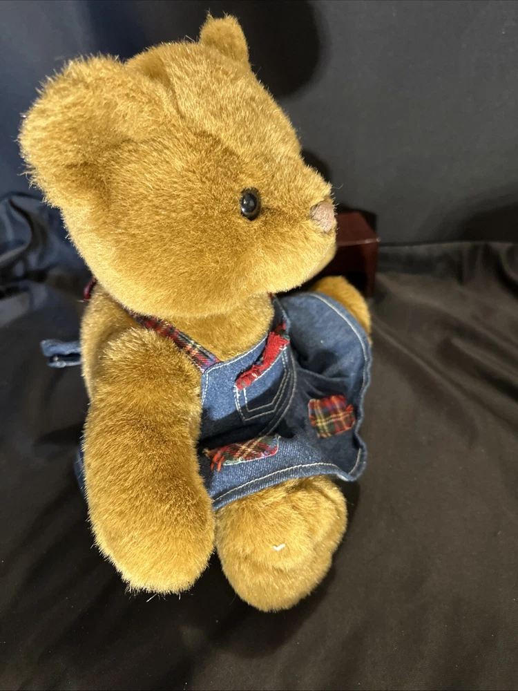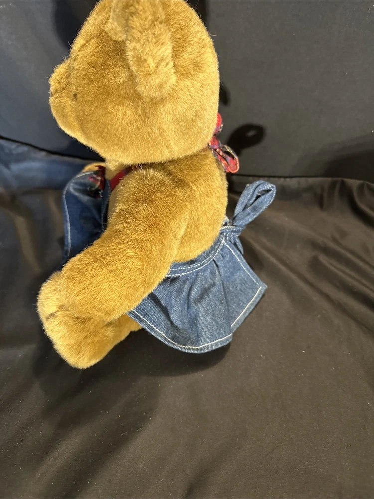 Vintage Build A Bear 11"-12" Teddy Cub In Denim Jumper Retired 1990s