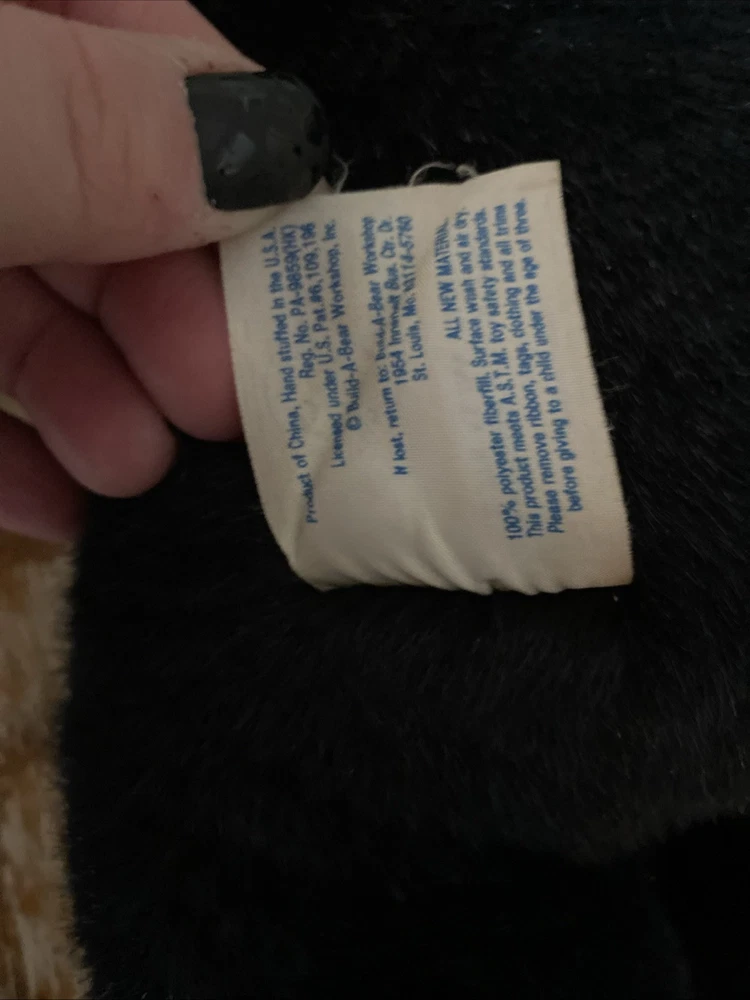 This vintage Build-A-Bear Workshop plush bear is a must-have for any collector or lover of stuffed animals. With its charming black and tan fur and adorable dimples, this 16-inch teddy bear is perfect for all occasions. It's made of high-quality plush material and has been well-maintained over the years, although it is a bit worn and has some signs of use. The bear's eye color is black, and it features the iconic Build-A-Bear Workshop branding on its paw. This retired BABW stuffed toy is a great addition to any collection or a thoughtful gift for a friend.