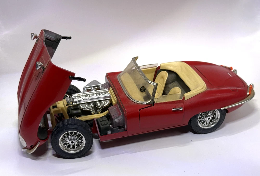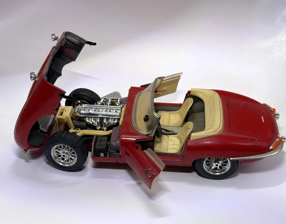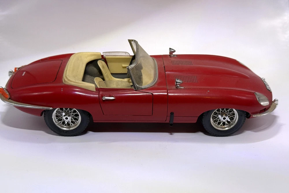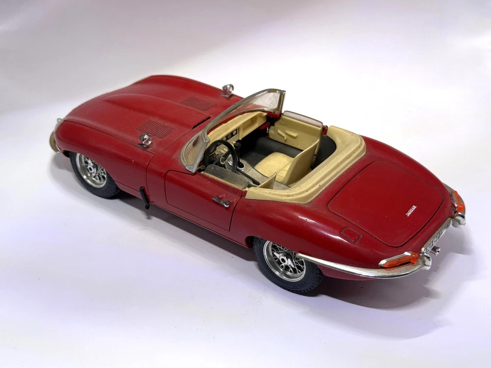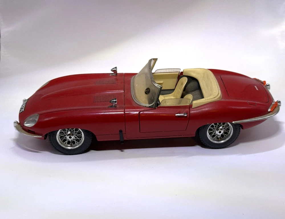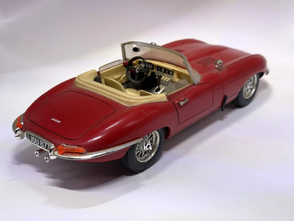 Vintage Burago 1961 Jaguar E Convertible Red 1:18 Scale Diecast Model Car 1/18. Please see all photos as they provide the best description of condition. Only displayed or stored, have not attempted to clean these, see photos for condition, additional images on request.