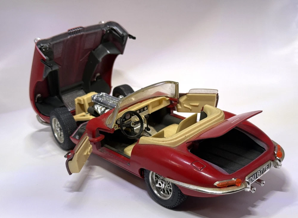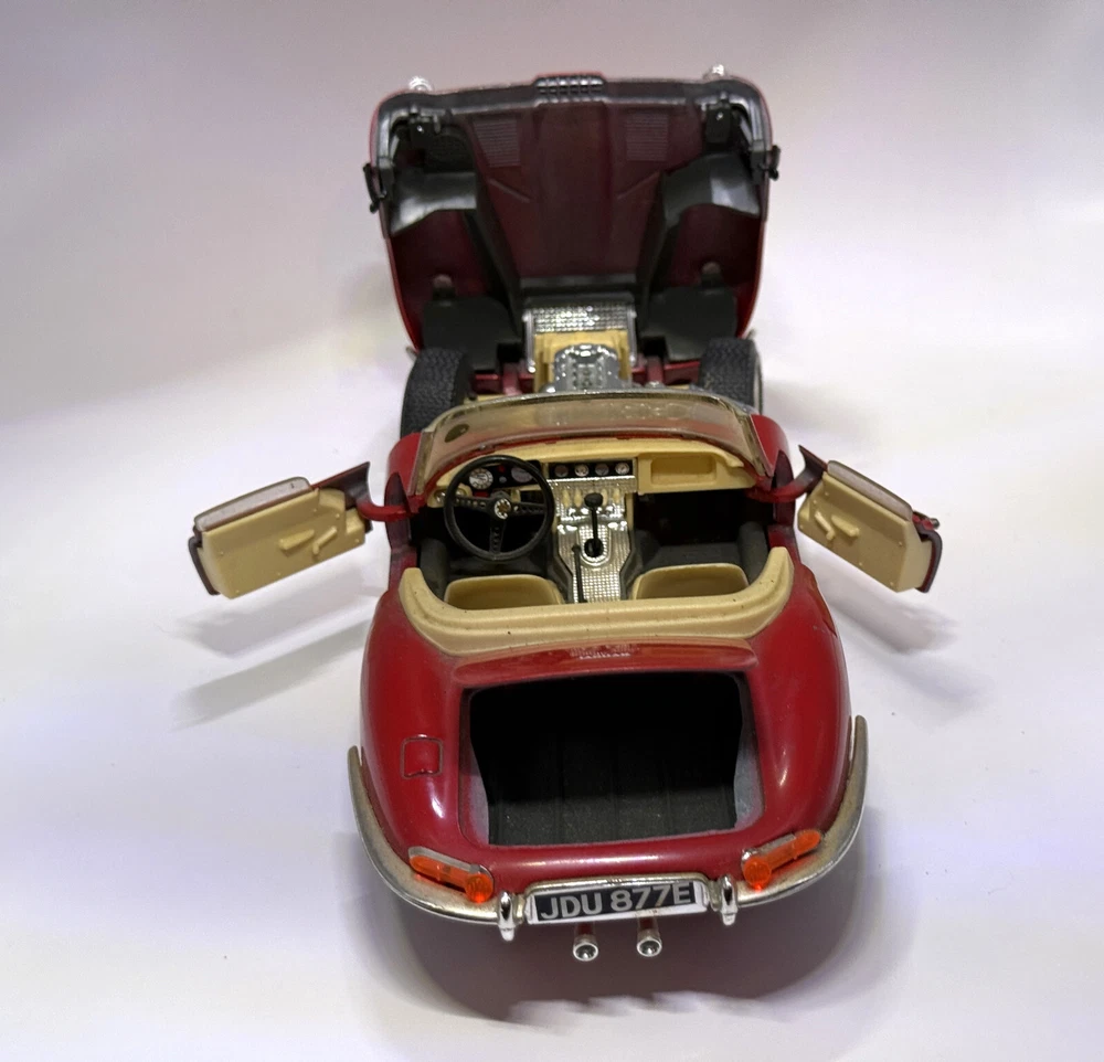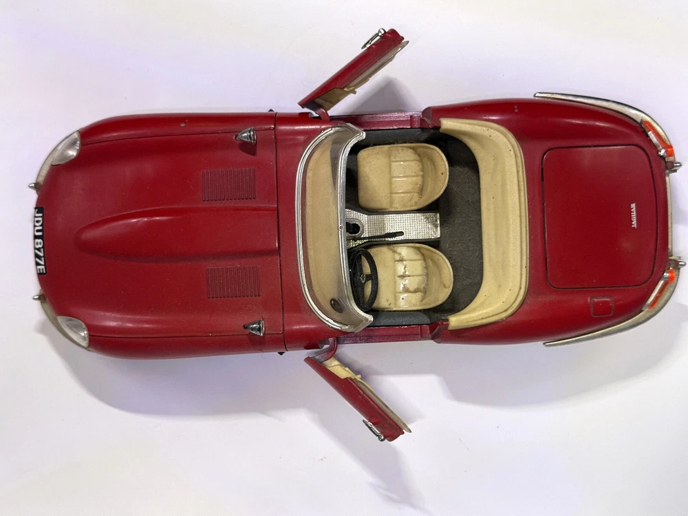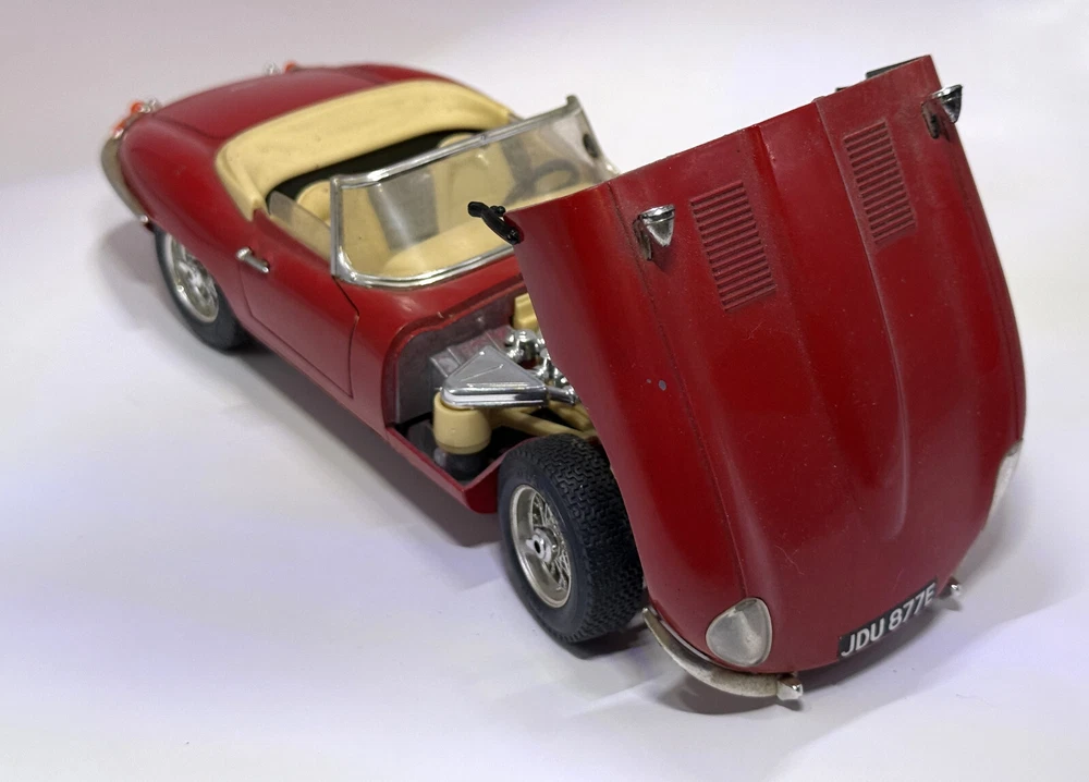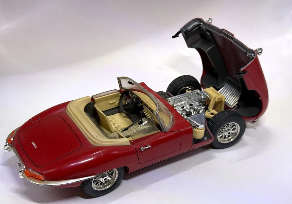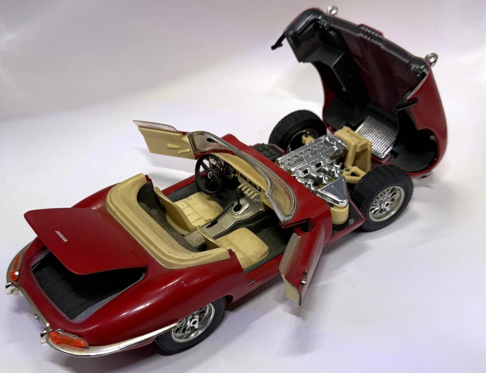 Vintage Burago 1961 Jaguar E Convertible Red 1:18 Scale Diecast Model Car 1/18. Please see all photos as they provide the best description of condition. Only displayed or stored, have not attempted to clean these, see photos for condition, additional images on request.