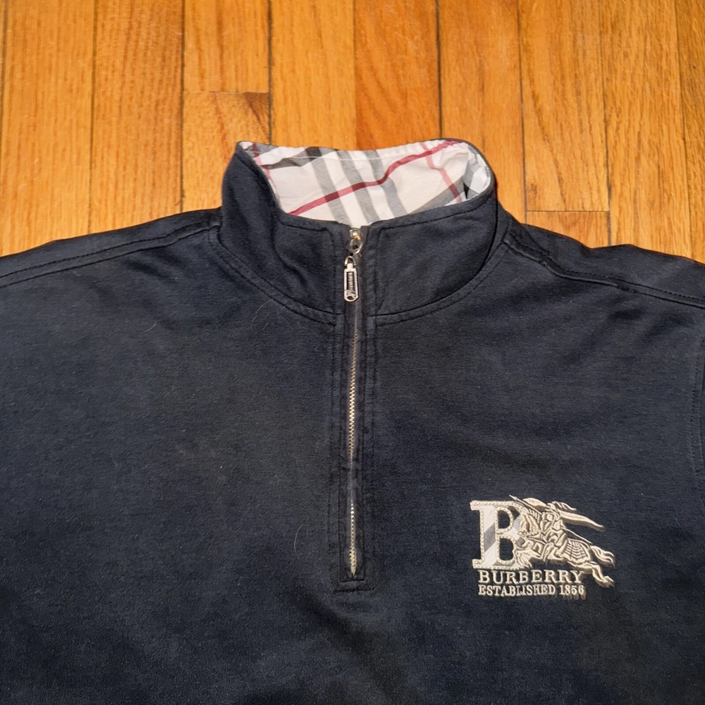 Burberry Brit Sweatshirt Mens L Black Logo Quarter Zip Long Sleeve Pullover