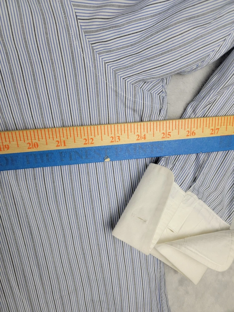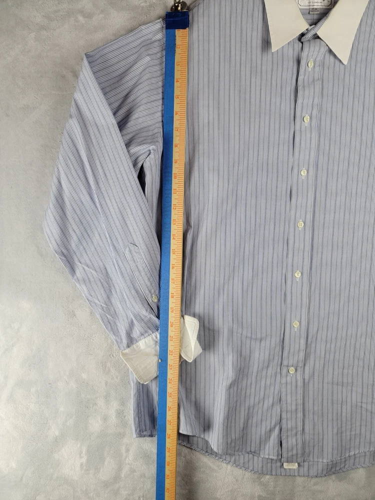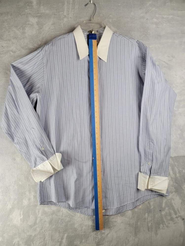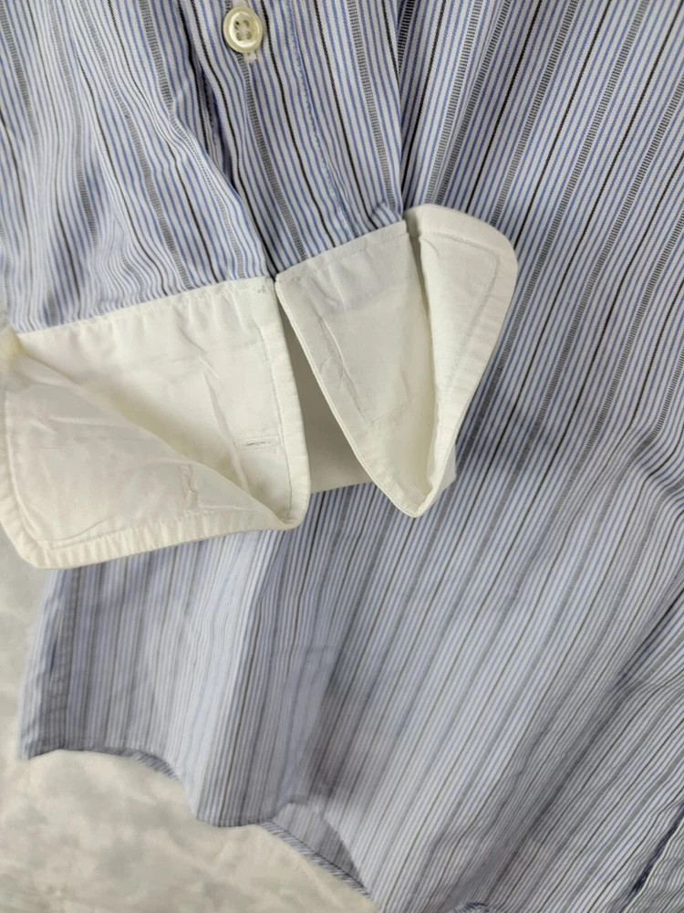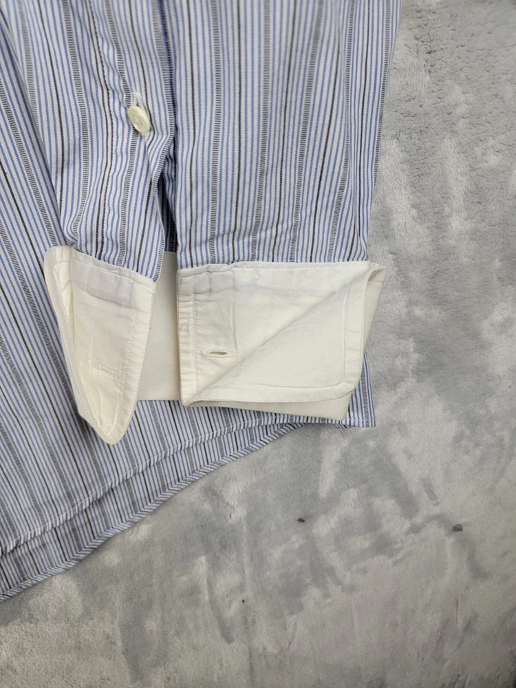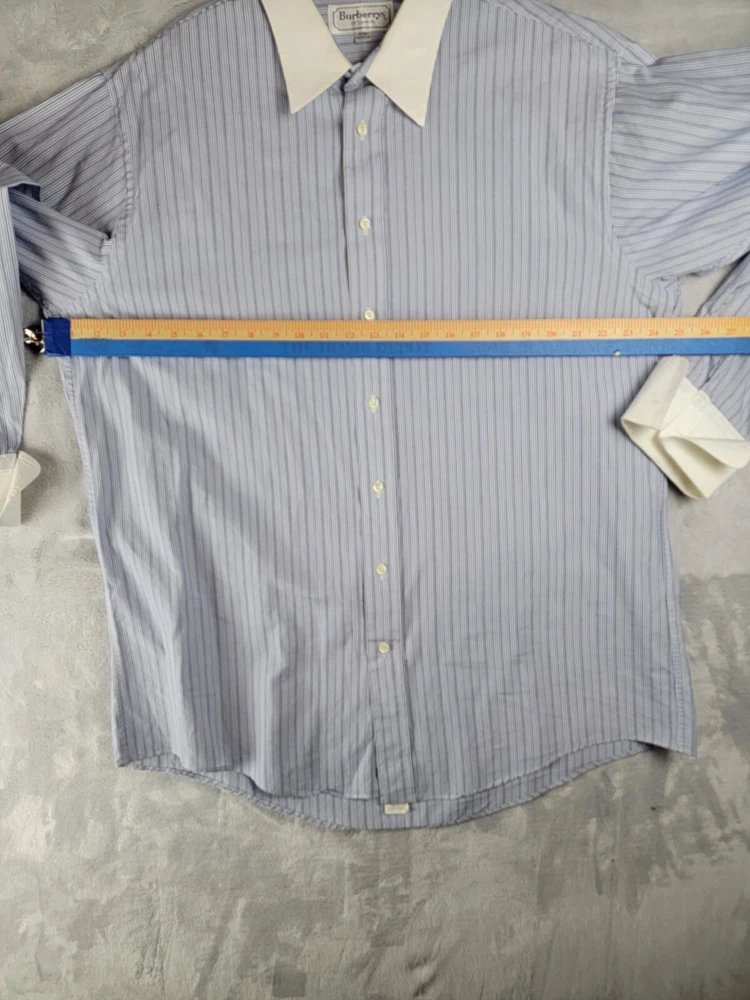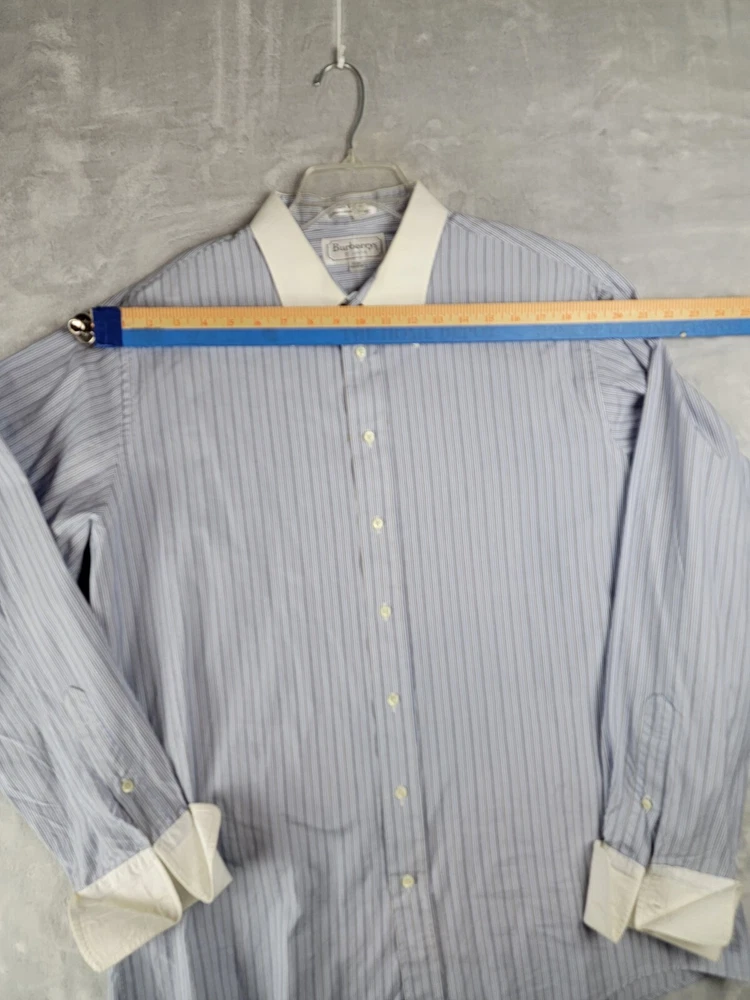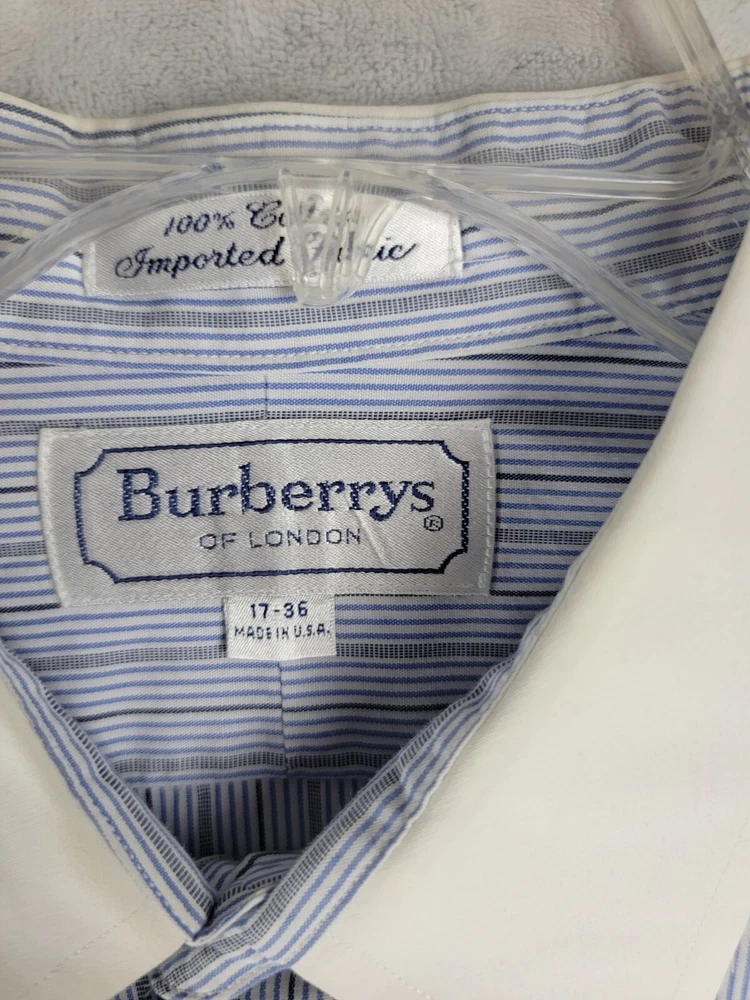 Vintage Burberrys of London Men’s Button Striped Shirt 17/36 French Cuffs In Good Condition with some wear visible consistent with preowned items. Slight stain on collar Please see the photos of the exact item you will purchase Thanks for Looking Fast Shipping Please see the measurements in the photos before purchase