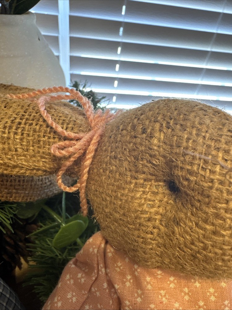 The Vintage Burlap Bunny Rabbit Set is a charming handmade set featuring a rabbit made from fabric burlap material. With its rustic and vintage appeal, this set is perfect for adding a touch of whimsy to any decor or Easter celebration. The attention to detail in the craftsmanship makes this a delightful addition to any collection of vintage-inspired items. Made in Haiti.