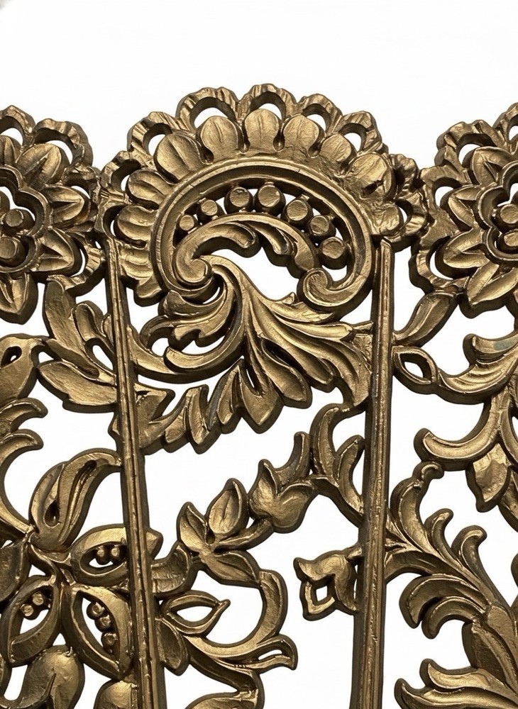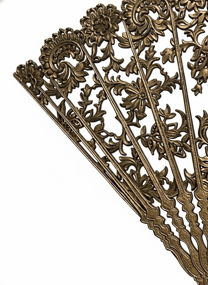 1-Column Ebay Template dewiso.com Vintage Burwood Hollywood Regency Gold Fan Wall Art - 43x26 in Mid-Century Modern Ornate Filigree Own a Piece of American Design History - Stunning XL Vintage Burwood Fan Command attention with this magnificent vintage Burwood Products Co. ornate gold fan wall hanging. A breathtaking example of 1960s Hollywood Regency glamour , this 43-inch statement piece features intricate filigree detail that brings instant vintage sophistication to any space.As Burwood ceased operations in 1997, this represents a finite piece of collectible American artistry . Key Features & Details: 🌟 MUSEUM-QUALITY COLLECTIBLE: This is not a modern reproduction. This is an authentic, extra-large (43-inch) Burwood fan (Model #4402) from the peak of Mid-Century Modern design, representing a lost American manufacturing era. ✨ INTRICATE FILIGREE DESIGN: The breathtakingly detailed scrollwork and floral motifs capture the essence of Hollywood Regency glamour. This piece serves as a dramatic focal point above a mantel, sofa, or headboard. 💪 DURABLE BURWOOD CONSTRUCTION: Crafted from the proprietary Burwood composite—a blend of wood pulp and plastic—this piece is remarkably lightweight yet sturdy, with fine details that have stood the test of time. 🏠VERSATILE DECOR STATEMENT: The antique gold finish seamlessly complements Mid-Century Modern, Bohemian, Spanish Revival, or Glam decor styles. It can also be easily repainted to match any color scheme. ✅ EXCELLENT VINTAGE CONDITION: Preserved with remarkable care, this piece shows minimal wear consistent with its age. There are no chips, cracks, or missing elements—a true testament to its quality. Detailed Specifications: Width: 43 inches Height: 26.5 inches Depth: 0.5 inches Weight: 4 lbs The Burwood Legacy: Burwood Products Co. was a renowned American manufacturer based in Traverse City, Michigan, celebrated for creating detailed decorative items using their unique, durable composite material. The company's closure in 1997 makes every authentic Burwood piece a cherished collectible. Why Buy From Us: We specialize in vintage decor and understand the value of preserving design history. This stunning fan has been carefully stored and is presented with complete honesty about its condition. Authentic, large-scale Burwood pieces of this caliber are increasingly difficult to find. Add to Cart Now to own this spectacular piece of vintage American art! Shipping within 1-2 days. Please contact if you have a question! 🗽LV Antiques: Vintage & Liquidation Emporium🗽 Your trusted source for curated antiques, vintage finds & liquidation deals. Bringing historical charm and modern convenience together - one treasure at a time.