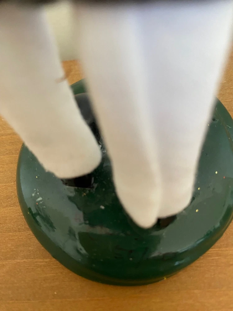 Byers Choice ice skating Boy. Byers Carolers Circa 2006 #50/100. This piece is signed and numbered by Joyce Byer at the base. Boy in gray pants and green jacket with plaid scarf. Previously owned, has small chip on his base. 9.5 inches tall.