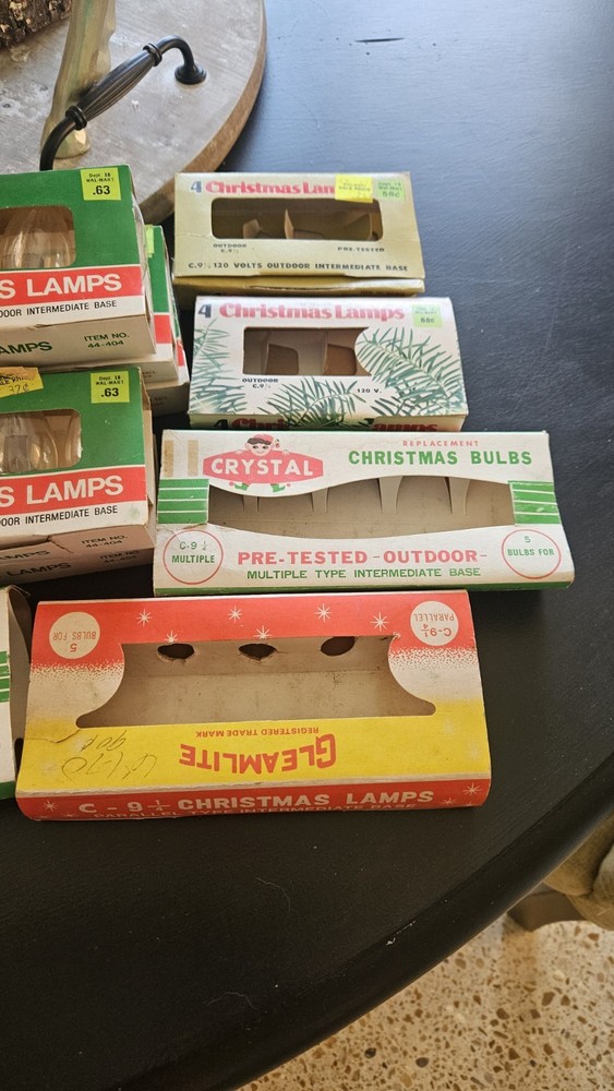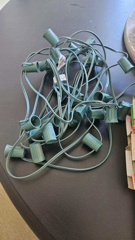 Vintage: Yes Type: String Light Power Source: Corded Electric Bulb Shape Code: C9 Occasion: Christmas Light Color: Multicolor Original/Reproduction: Original Cord Color: Green Control Style: Wall Switch Color: Multicolor Antique: No Manufacturer: GE Installation Area: Outdoor Personalize: No Brand: GE Lighting Technology: Incandescent Sensor Type: Light Voltage: 120 V