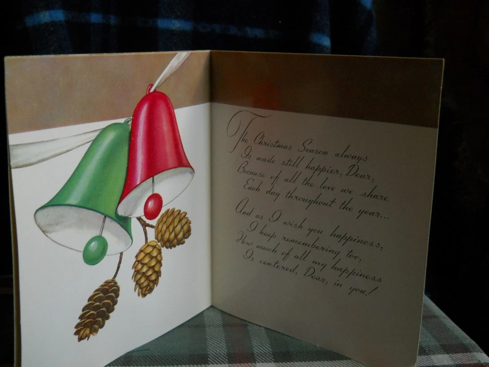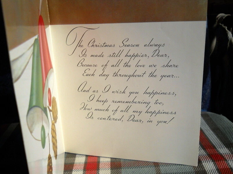 Vintage CHRISTMAS GREETING CARD vintage RUST CRAFT CARD unused copyright 1952 TO MY HUSBAND CARD HAS SMOOTH FINISH RED SATIN PILLOW - CHRISTMAS MESSAGE - SIZE 5 3/4"W X 7" H with envelope * WILL combine cards for shipping OR BUY 5 (five ) CARDS * SHIPPING FREE Please !! let me know if you plan to do multi card ordering