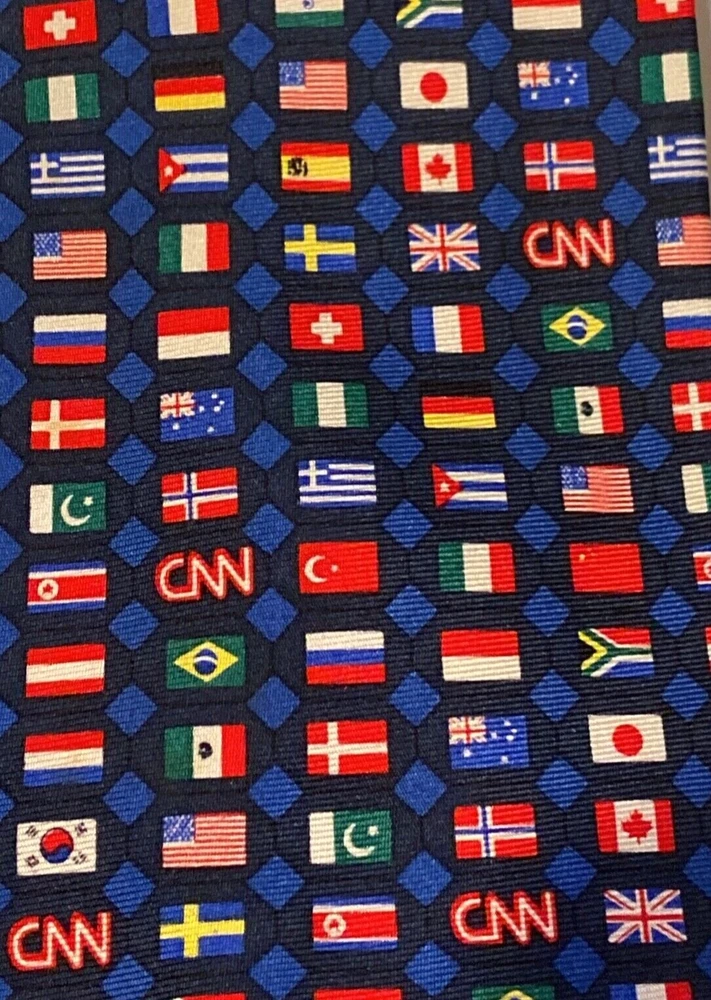Vintage CNN Silk Necktie featuring World International Flags by Buffalo Bay. It is 60.5” long with blue Diamonds behind the flags.